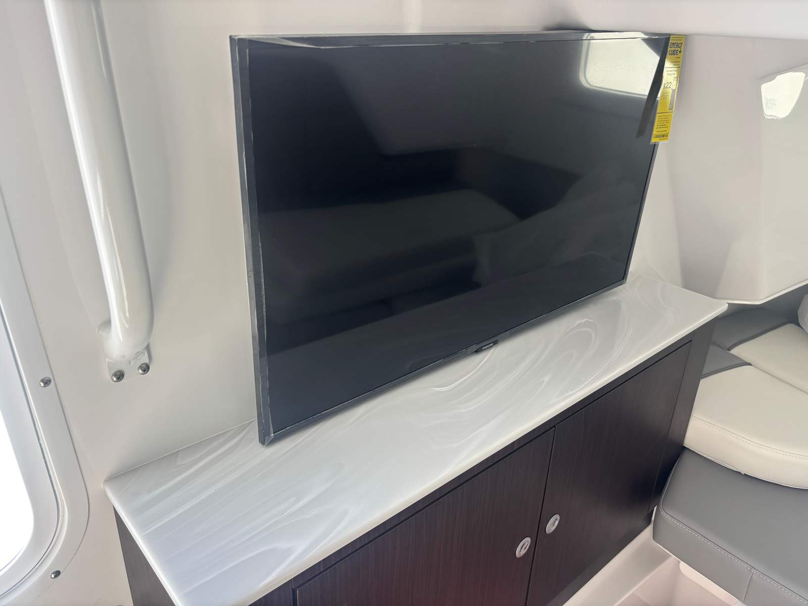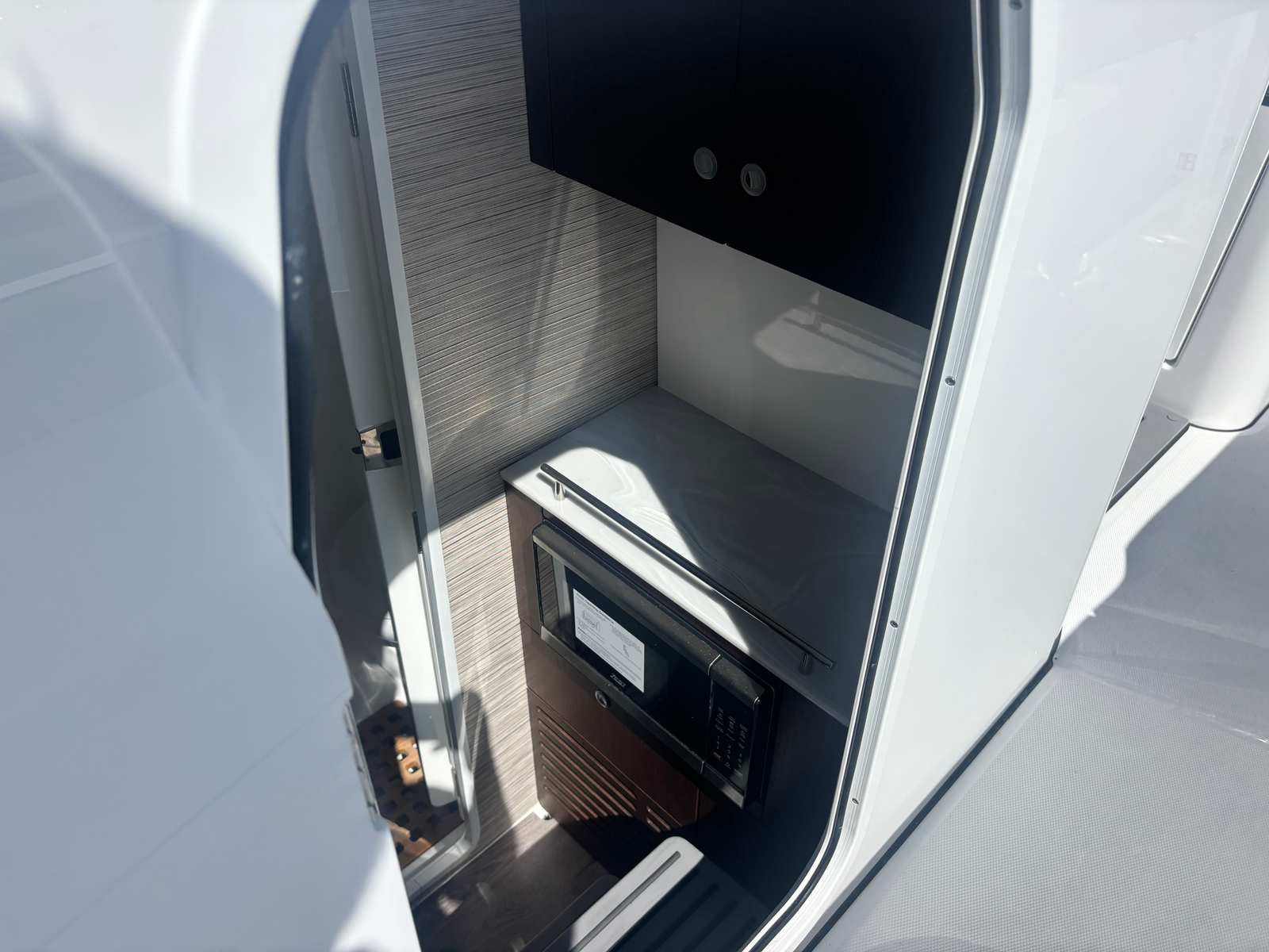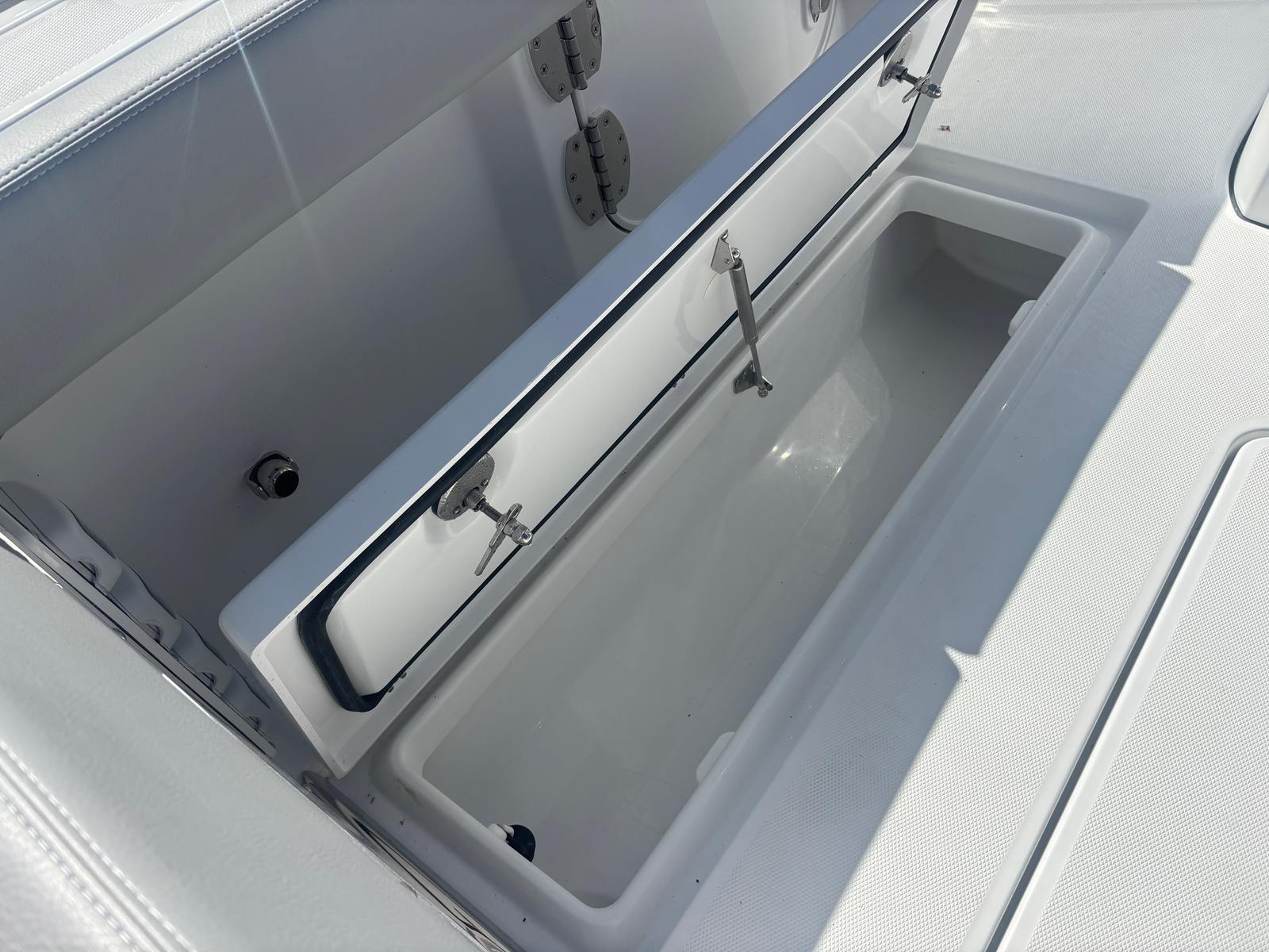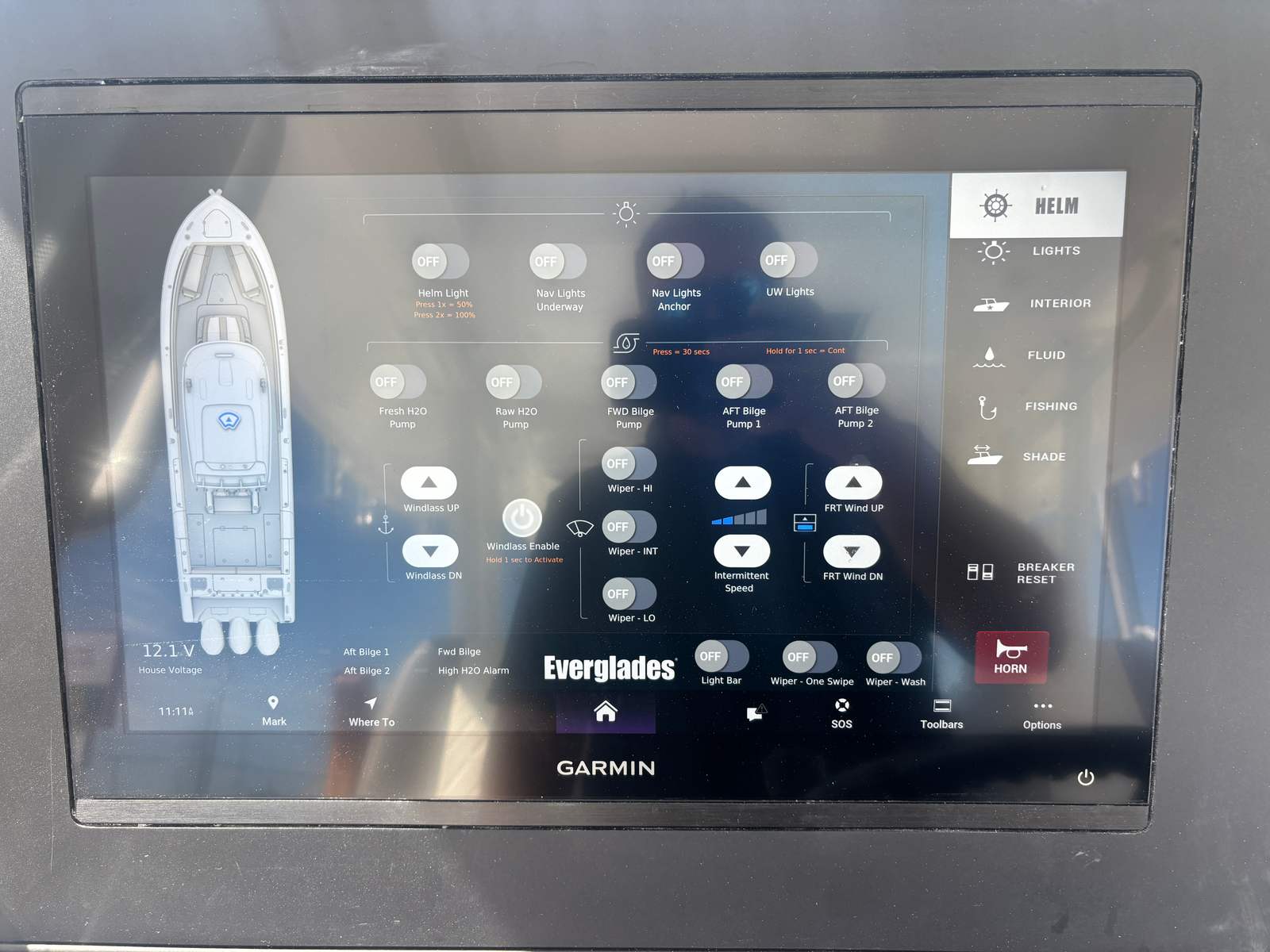 The Everglades 375 CC is as practical as it is luxurious. Its generous length and smart layout offer plenty of storage for gear, supplies, and personal items, keeping the deck clutter-free and organized. Docking is a breeze thanks to the Joystick control, allowing for precise movements in tight spaces. The efficient triple Yamaha engines not only deliver impressive power but also contribute to fuel efficiency, making longer trips more economical. Maintenance is simplified with the Engine Flushing System, and the electrically actuated valves add an extra layer of convenience and reliability.