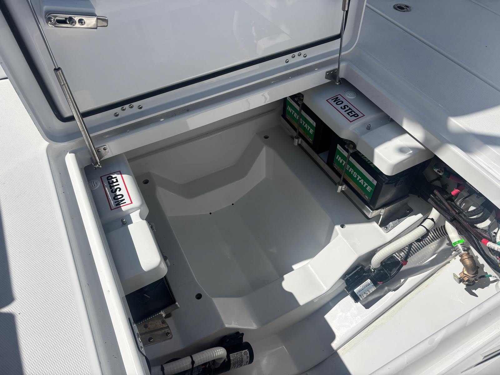 Step aboard the Everglades 375 CC and discover a world of premium features designed to enhance every aspect of your boating experience. The Flint Gray upholstery offers a modern, comfortable setting for you and your guests, while the Canvas Package provides essential protection from the elements. Anglers will appreciate the comprehensive Fishing Package, which ensures you have everything you need for a successful day on the water. The Carbon Fiber Steering Wheel Upgrade at the main station adds a touch of sport-inspired luxury and precision handling.Convenience is at the forefront with the Electrical Convenience Package, streamlining your onboard experience with advanced electrical systems. The Chiller Plate Package keeps your catch or refreshments perfectly chilled, adding to the boat’s versatility. Electrically actuated valves on thru hulls for the waste system and generator offer seamless operation and peace of mind. The Engine Flushing System for all three engines simplifies maintenance, ensuring your investment remains in peak condition.