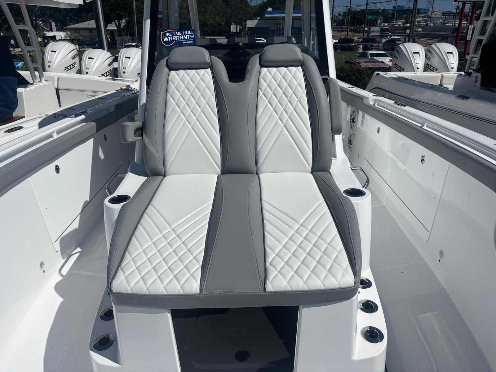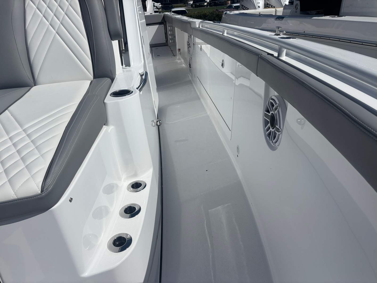 Power and precision define the performance of the Everglades 375 CC. Outfitted with triple Yamaha White 350hp engines, this center console is built for speed, agility, and reliability. With a combined 1,050 horsepower at your command, you can expect exhilarating acceleration, smooth cruising, and the confidence to tackle offshore adventures with ease. The advanced AutoPilot and Joystick system provide intuitive control, making navigation effortless even in challenging conditions. Whether you are chasing the horizon or maneuvering into a tight slip, the Everglades 375 CC delivers a responsive and enjoyable ride every time.
