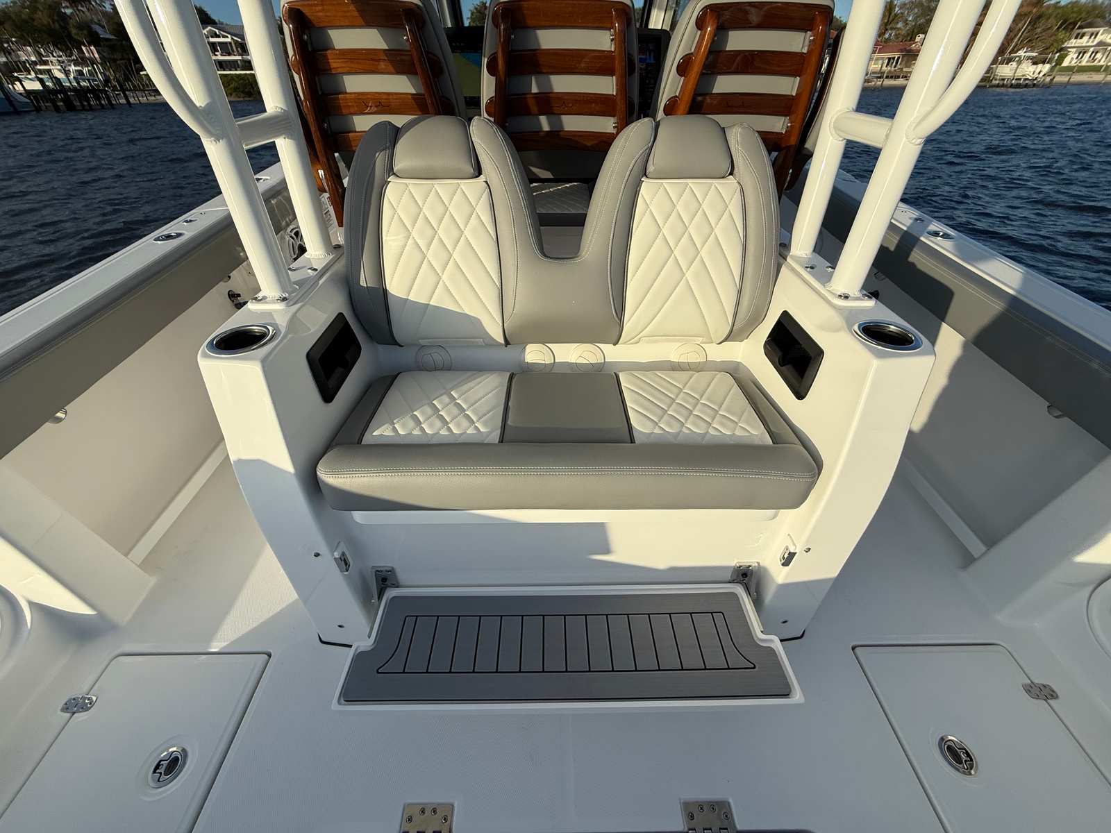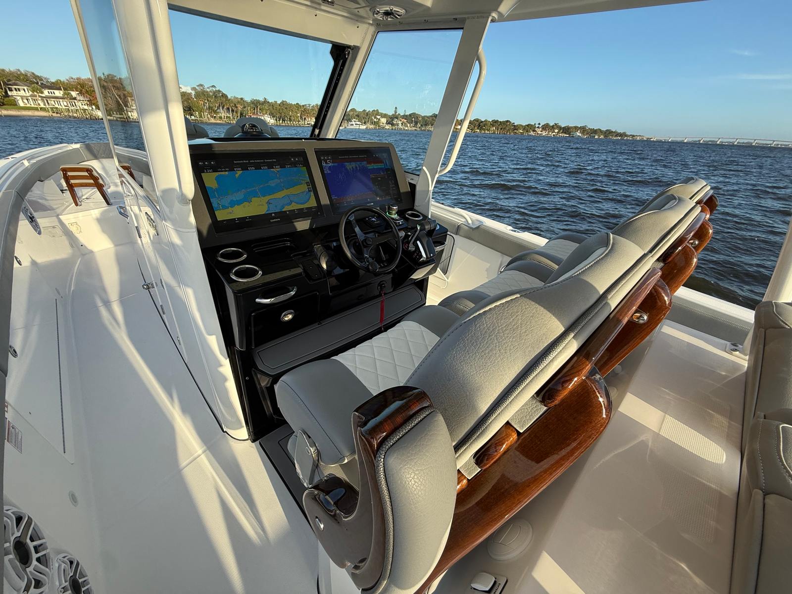 Power and precision are at the heart of the Everglades 375 CC. Equipped with triple Mercury V10 Cold Fusion White engines, each delivering 400 horsepower, this center console boat boasts a combined 1200 horsepower. This powerhouse configuration provides exhilarating speed, smooth acceleration, and exceptional handling, making it ideal for both offshore adventures and leisurely cruises. Whether you are chasing trophy fish or enjoying a day with family and friends, the 375 CC delivers the performance you need to make every outing unforgettable.