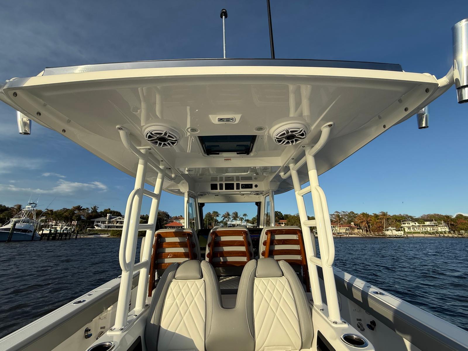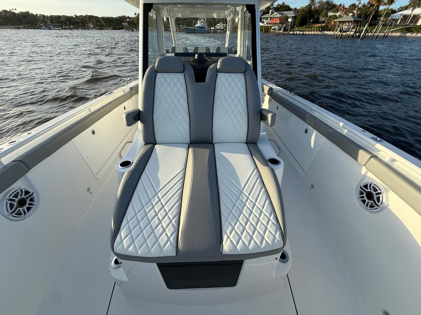 Owning the Everglades 375 CC means embracing a lifestyle of fun, relaxation, and excitement. This center console boat for sale is designed to bring people together, offering spacious seating, ample deck space, and thoughtful amenities that cater to both serious anglers and casual cruisers. The combination of powerful engines and advanced stabilization ensures a comfortable ride, allowing you to explore new destinations with confidence.The premium audio system sets the mood for any occasion, whether you are hosting a sunset cocktail party or enjoying a solo day on the water. The chiller plate keeps your beverages and snacks cool, while the teak bow backrest invites you to unwind and soak up the sun. With its fishing package, you can easily transition from family fun to serious sportfishing, making every trip uniquely yours.