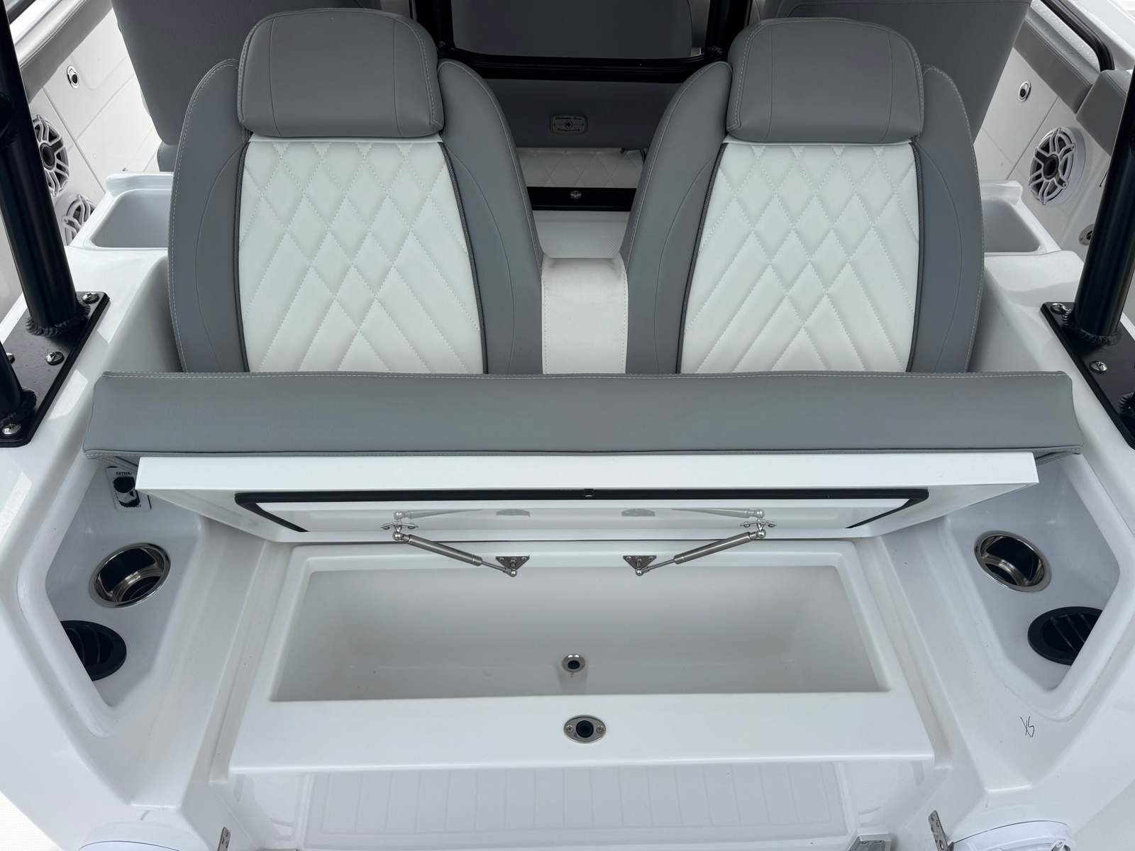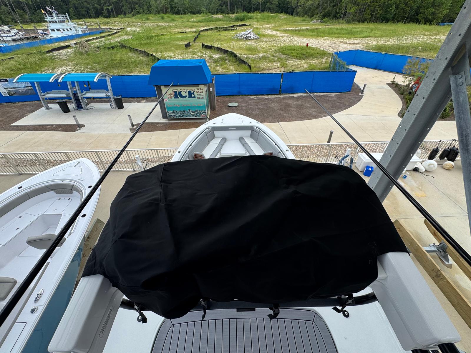 - Full Upper Station - w/ auto pilot and joystick, sun top, 2 drink holders, folding helm seat bolsters, stainless steel grab rail, glove box, Garmin GHS 11 handset, Garmin 8616 additional screen