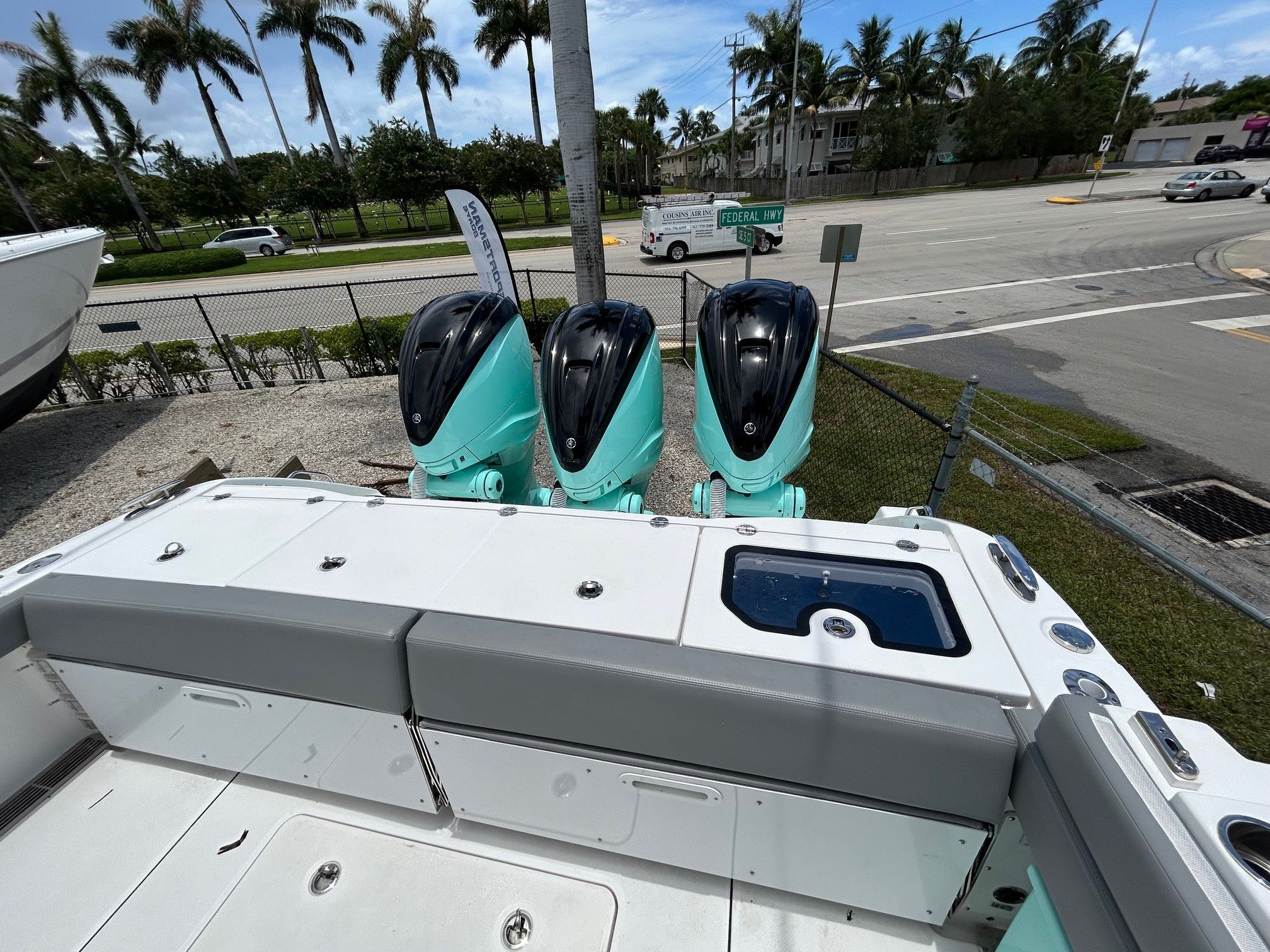 When it comes to performance, the Everglades 395 CC is in a league of its own. Powered by three high-performance engines delivering a combined 1350 horsepower, this Center Console boat is built for speed, agility, and reliability. The triple-engine setup ensures smooth acceleration, impressive top-end speed, and the ability to handle offshore conditions with confidence. With only 160 engine hours, these engines have plenty of life left, promising many seasons of exhilarating boating experiences. Whether you are cruising along the coastline or heading out for a day of deep-sea fishing, the Everglades 395 CC delivers a thrilling ride every time.