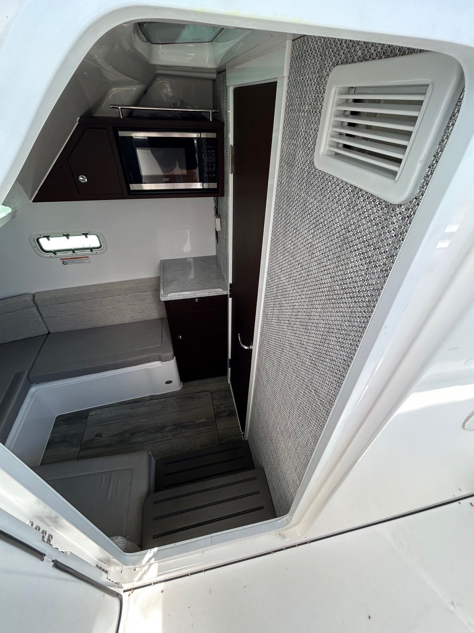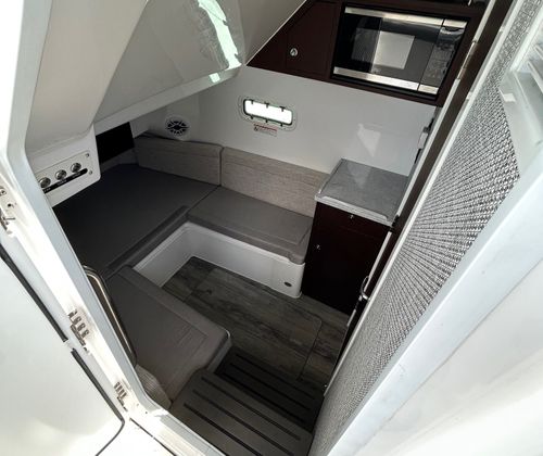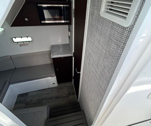The Everglades 395 CC is as practical as it is luxurious. Its generous storage options make it easy to stow gear, supplies, and personal items, keeping the deck clutter-free and organized. The freezer package ensures your provisions are always fresh, while the electric grill and storage drawer add convenience for onboard dining. Fender pins simplify the docking process, making it easy to secure the boat at marinas or docks. Fuel efficiency is enhanced by the advanced engine technology, allowing you to cover more distance without frequent refueling stops. The upper station provides excellent visibility for navigation and fishing, while the canvas package offers protection from sun and rain, extending your boating season and enhancing comfort in all weather conditions.