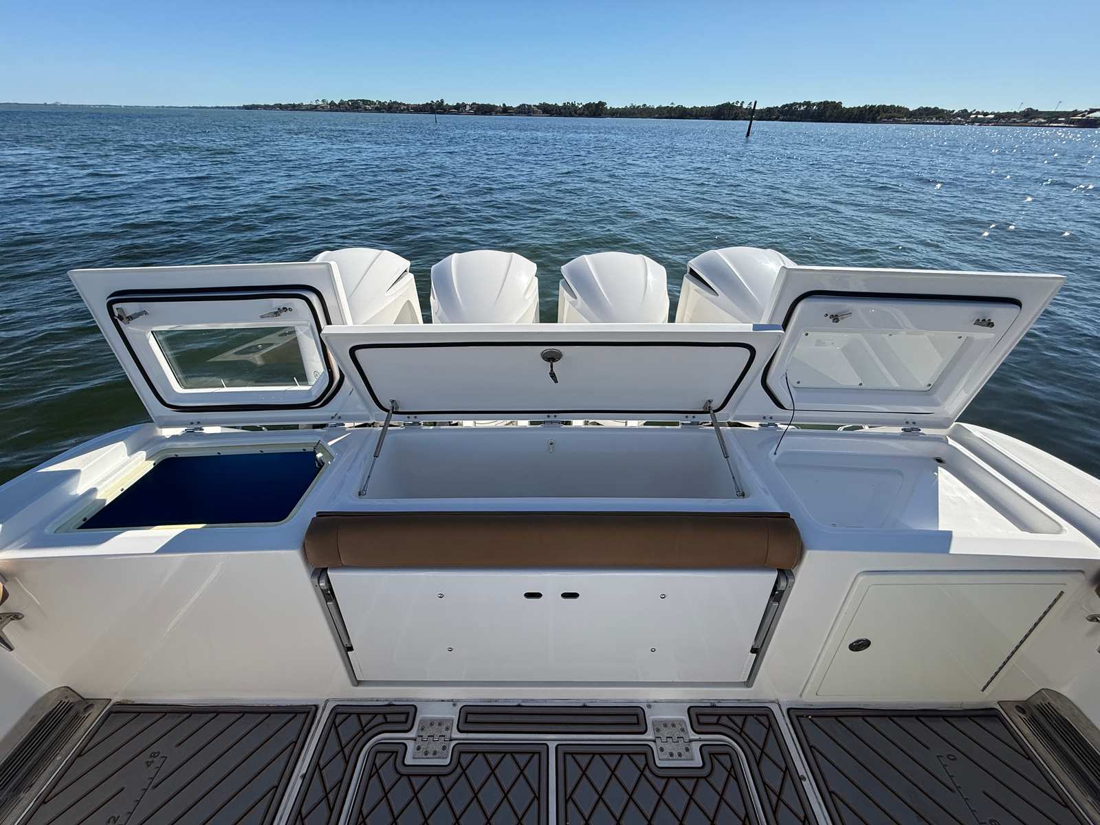 Power and performance are at the heart of the Everglades 435 CC. Equipped with four high-performance engines delivering a combined 1,400 horsepower, this center console boat is built to conquer the open seas with confidence and speed. The quad-engine setup provides exceptional acceleration, smooth cruising, and impressive top-end speed, making it ideal for long offshore runs, tournament fishing, or simply enjoying a thrilling ride with friends and family. With 500 engine hours, these engines have been maintained to ensure reliable performance and longevity. The advanced hull design ensures a dry, stable, and comfortable ride, even in challenging conditions, so you can focus on the adventure ahead.