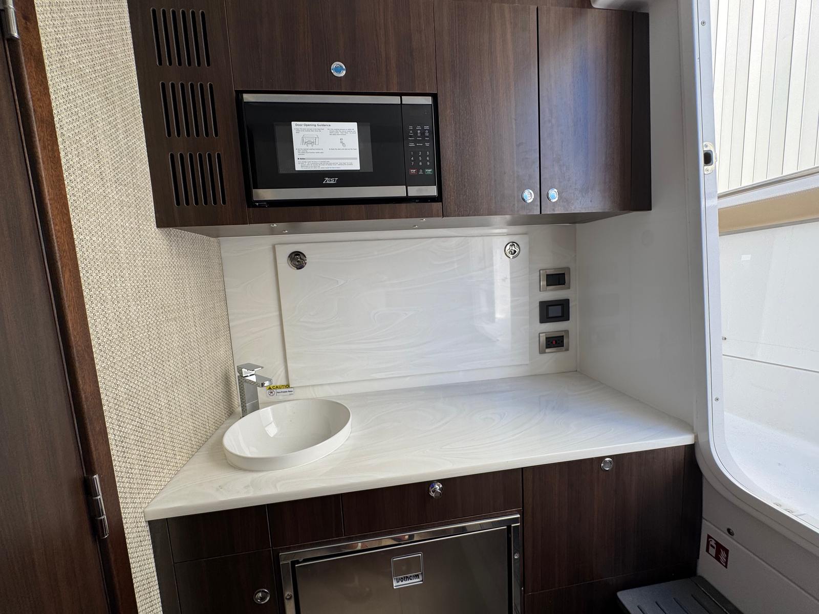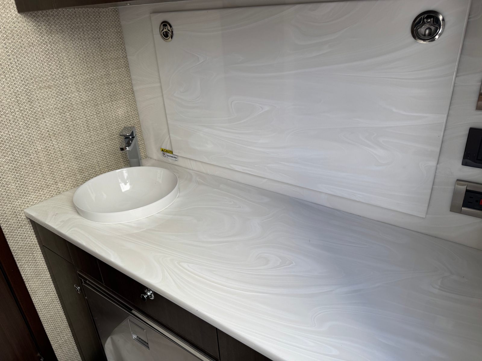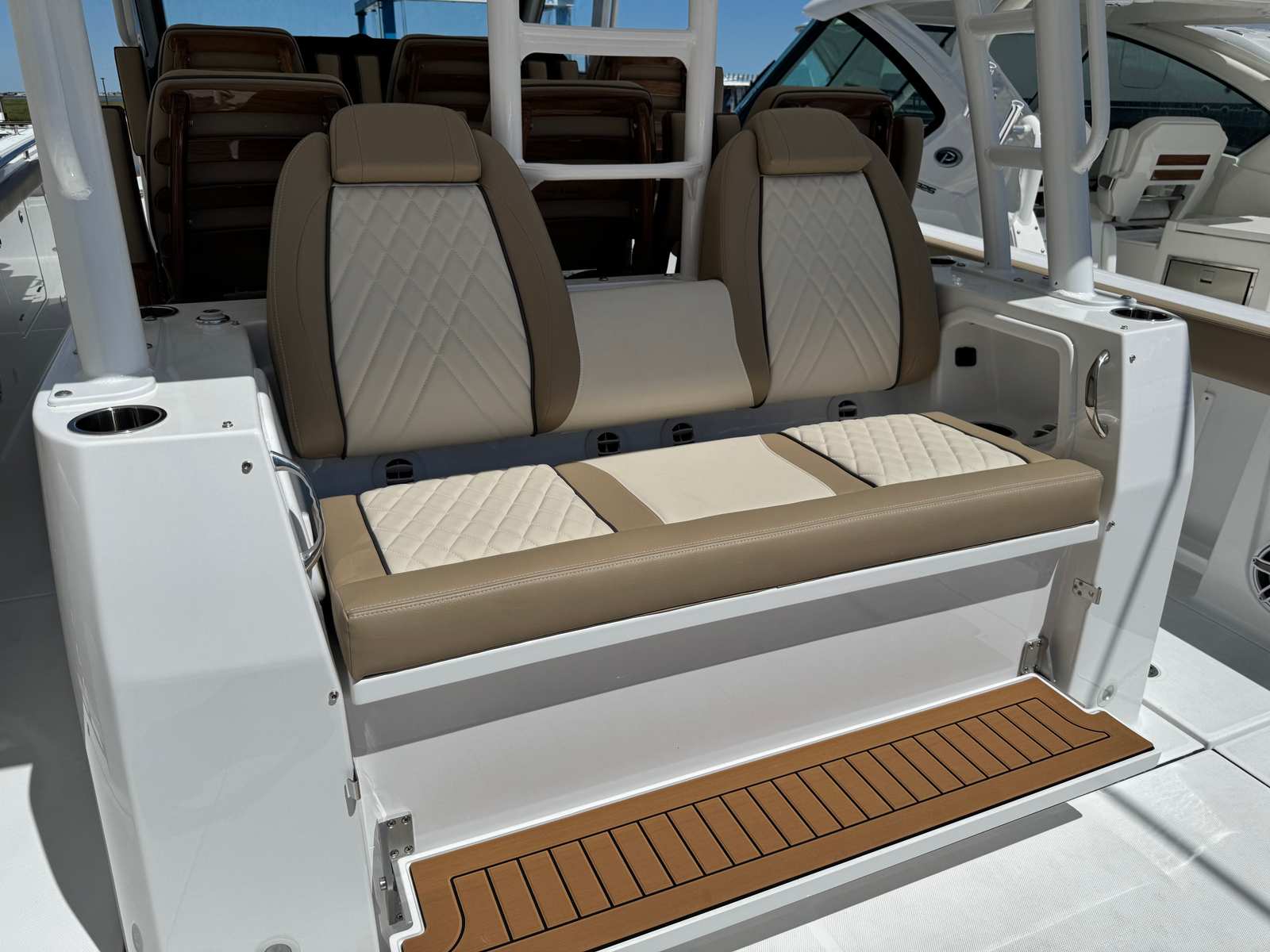 Power and precision define the performance of the Everglades 455 CC. Equipped with four Yamaha Helm Master EX White Quad Engine 450XTO engines, this boat boasts a combined 1,800 horsepower. The advanced Yamaha Helm Master EX system features autopilot and joystick controls, providing effortless maneuverability and precise handling in a variety of conditions. Whether you are cruising at high speeds or navigating tight marinas, the 455 CC offers a smooth, responsive ride that instills confidence at the helm. The integration of state-of-the-art navigation and control systems ensures that every journey is as enjoyable as it is efficient.
