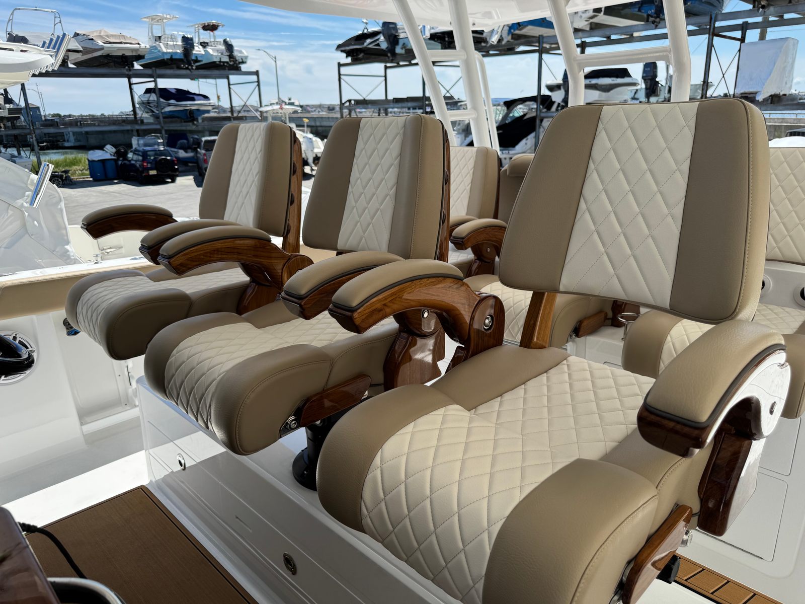The Everglades 455 CC is loaded with premium features designed to enhance your boating experience. The interior cabinet color in Coconut Tan creates a warm and inviting atmosphere, while the canvas package offers comprehensive protection for all key seating and console areas. The premium package includes a suite of advanced electronics, such as the Garmin VHF 315, AIS 800 Transceiver, and triple GPSMAP 9222xsv chart plotters, ensuring you are always connected and informed on the water. The hardtop dual display 8616, B175 high and low chirp transducers, and Fantom 54 radar provide unmatched navigation and fish-finding capabilities.The hull color gel in classic white delivers timeless style, complemented by teak accents at the forward lounge, bow seats, and dive doors. The Makefast powered awning offers shade and comfort at the touch of a button, while the freezer package for the mezzanine seat and dedicated fish boxes ensure your catch stays fresh. Outriggers with 22-foot carbon internal rigging are perfect for serious anglers, and the thoughtful layout maximizes both utility and relaxation.