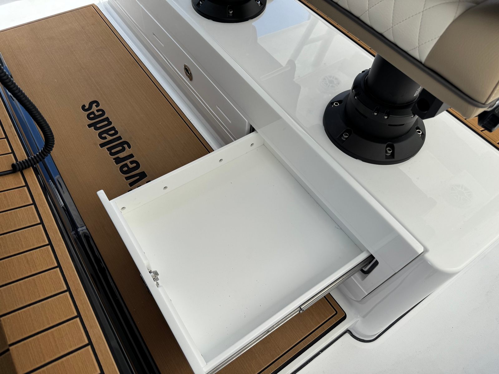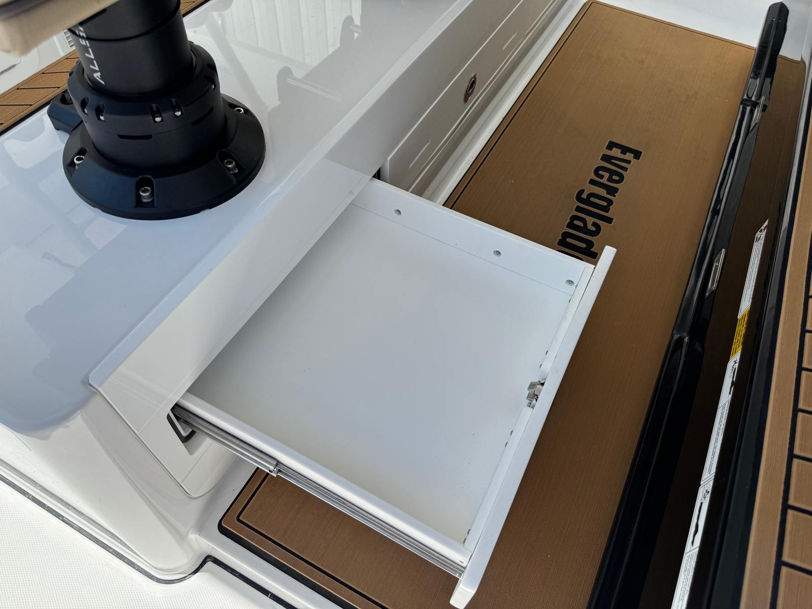 The Everglades 455 CC is as practical as it is luxurious. Thoughtful storage solutions throughout the boat keep gear organized and accessible, while the advanced helm systems simplify docking and close-quarters maneuvering. The efficient engine setup not only delivers impressive power but also optimizes fuel consumption for longer journeys. The comprehensive canvas package protects your investment from the elements, ensuring the boat remains in pristine condition.The freezer package and dedicated fish boxes cater to anglers who demand the best, while the powered awning and comfortable seating make it easy to transition from action-packed adventures to leisurely relaxation. Every aspect of the 455 CC is designed to enhance convenience and enjoyment, making ownership a pleasure from start to finish.