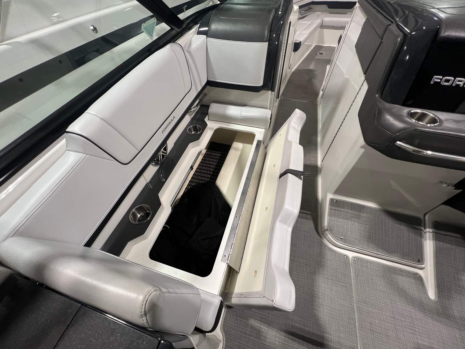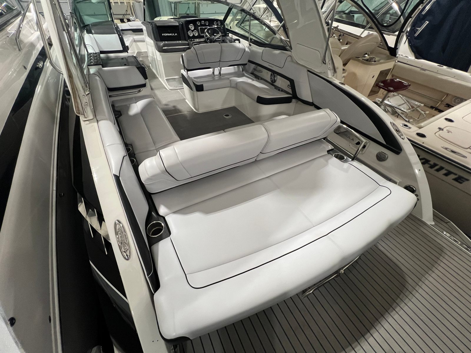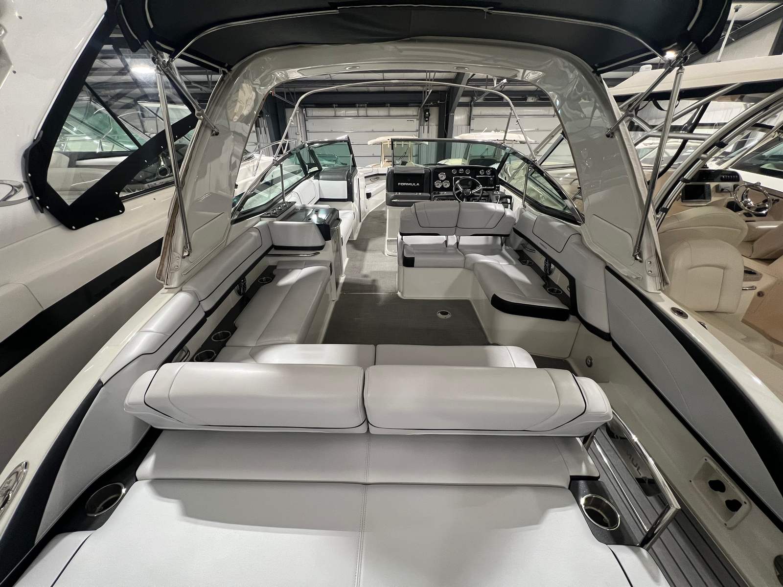 Owning the Formula 330 CBR cruiser means embracing a lifestyle of fun, relaxation, and adventure. The spacious layout is perfect for entertaining friends and family, offering ample seating and room to move about. The comfortable cabin and climate control features ensure everyone stays cozy, whether you’re escaping the summer heat or enjoying a crisp autumn evening on the water. The premium sea grass flooring in the cockpit adds both style and practicality, making cleanup after a day of fun effortless. Socializing is a breeze on this cruiser boat for sale, with plenty of space for dining, lounging, and enjoying the company of loved ones. The bimini top and camper enclosure provide flexible options for sun and shade, so you can tailor your experience to suit the weather and your preferences. Whether you’re hosting a sunset cocktail party or embarking on a weekend adventure, the Formula 330 CBR delivers the perfect setting for memorable moments.