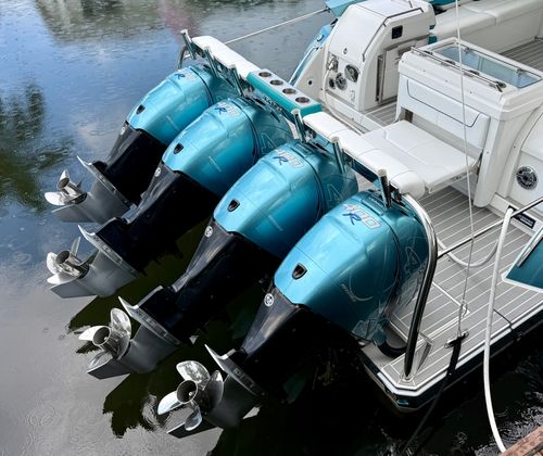 Stunning Imron painted hull graphics with custom color-coordinated engines