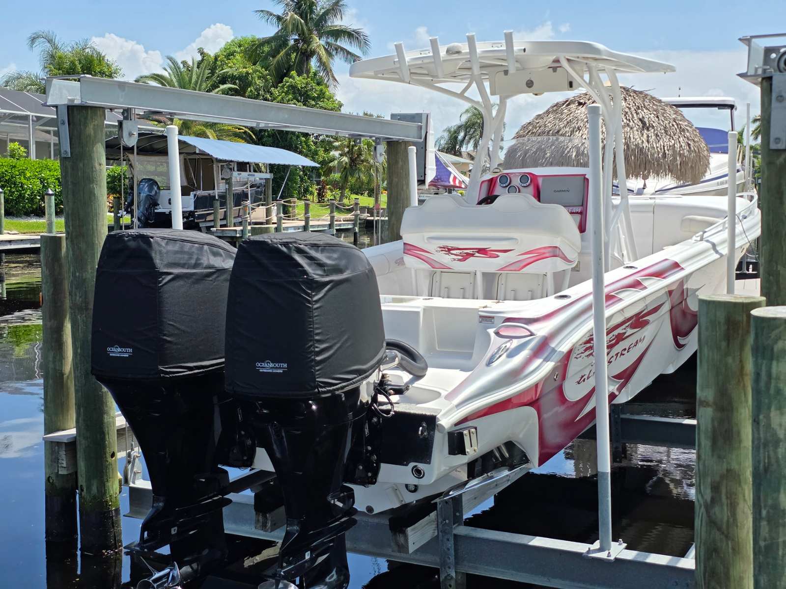 This 328 SCX can do it all! Notable options include: Twin 300 Suzukis with just over 600 hours and a fresh service, trim tabs with indicator, large boarding ladder for diving and sandbar days, livewell, removable aft bench seat for added fishability, dual drop-down bolster seats at the helm, color-matched hard top, Garmin gps, killer JL Audio bluetooth stereo, forward entry head in console, cuddy cabin, new marine flooring, and more! Priced to move fast at $95k and boat was just fully detailed, contact Walker's Marine today for more information!