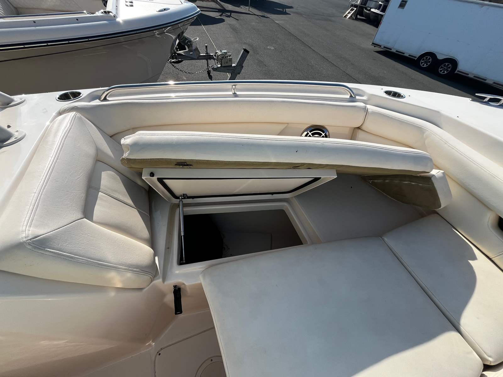 Bow/Cockpit Table & Bow Casting Platform Insert w/ Cushion – Flexible space for dining or lounging.