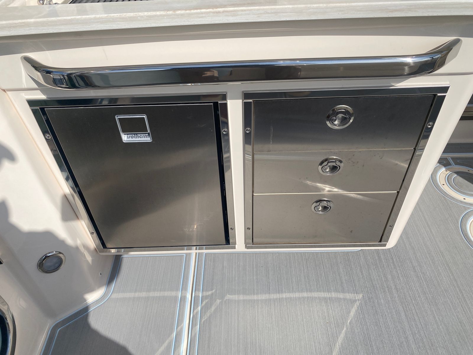 This Dual Console boat for sale is as practical as it is luxurious. The ample storage space allows you to stow fishing gear, water toys, and personal items securely, keeping the deck clutter-free. The boat’s manageable length makes docking and maneuvering straightforward, even for those new to boating. Fuel efficiency is optimized by the advanced engine technology, helping you spend more time on the water and less at the fuel dock.The Freedom 345’s versatility means it’s equally suited for day trips, weekend getaways, or extended excursions. Its robust construction and reliable performance ensure you can venture offshore with confidence, while the comfortable seating and amenities make every outing enjoyable. Whether you’re fishing, cruising, or relaxing at anchor, this Grady-White boat for sale adapts to your needs and exceeds expectations.