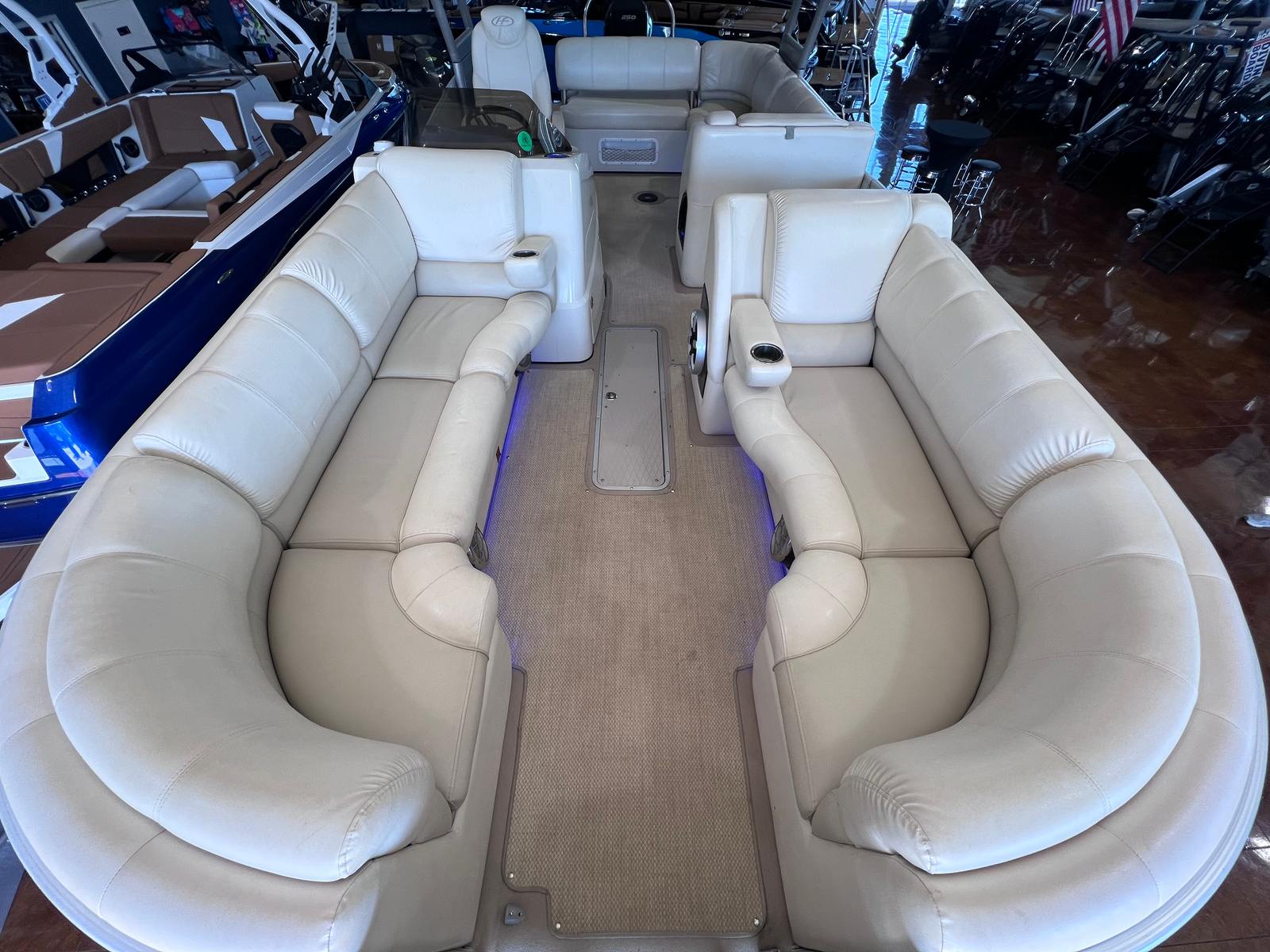The Harris Grand Mariner 230 is thoughtfully designed with features that enhance both comfort and convenience. The 23-foot length provides a spacious deck area, allowing guests to move freely and enjoy the open layout. Plush seating invites relaxation, while the sturdy construction ensures a stable and secure ride. The pontoon’s layout is perfect for hosting gatherings, with plenty of room for coolers, snacks, and water toys. The high-quality materials and attention to detail are evident throughout, reflecting Harris’s reputation for excellence in pontoon boat manufacturing.