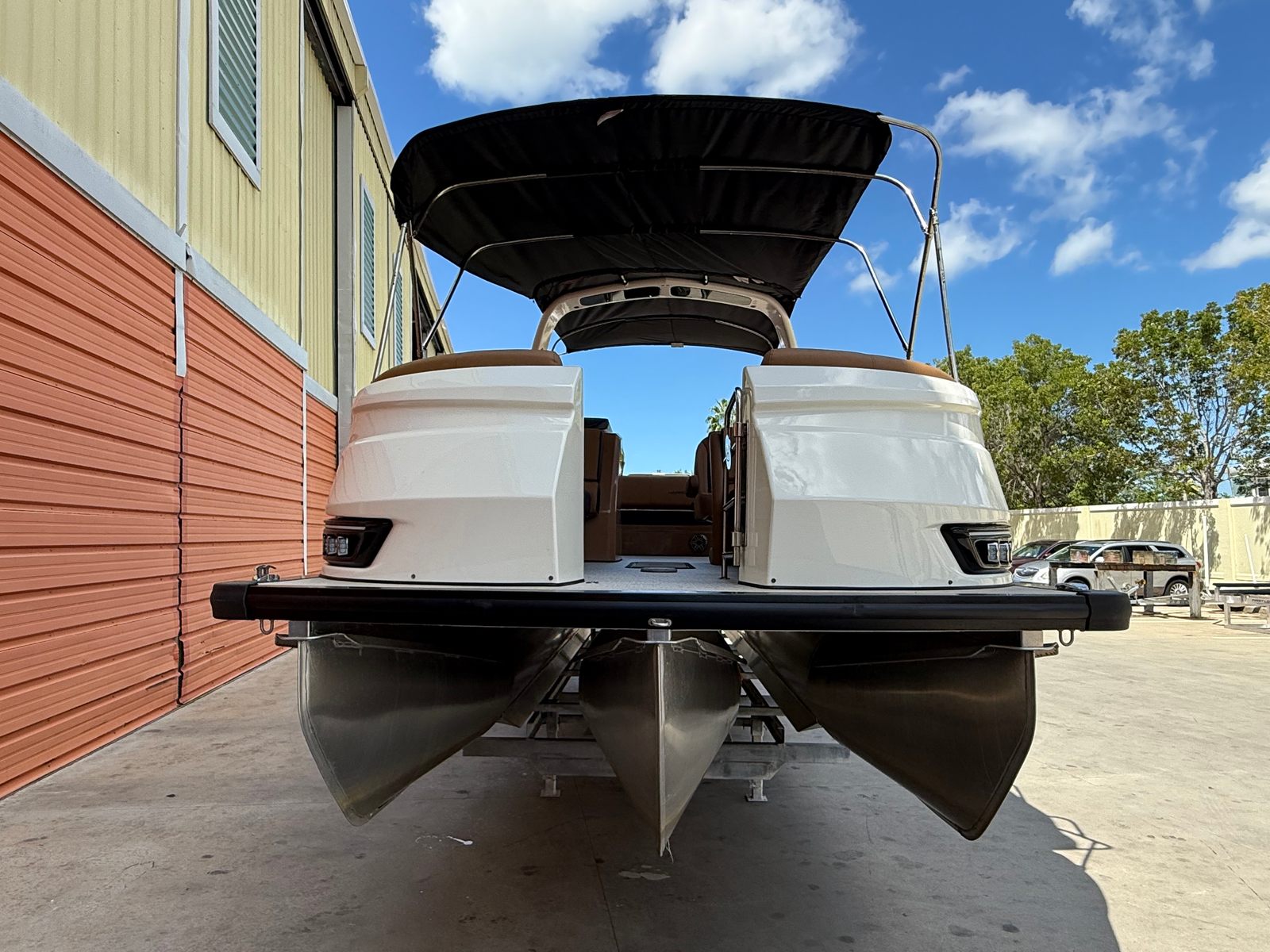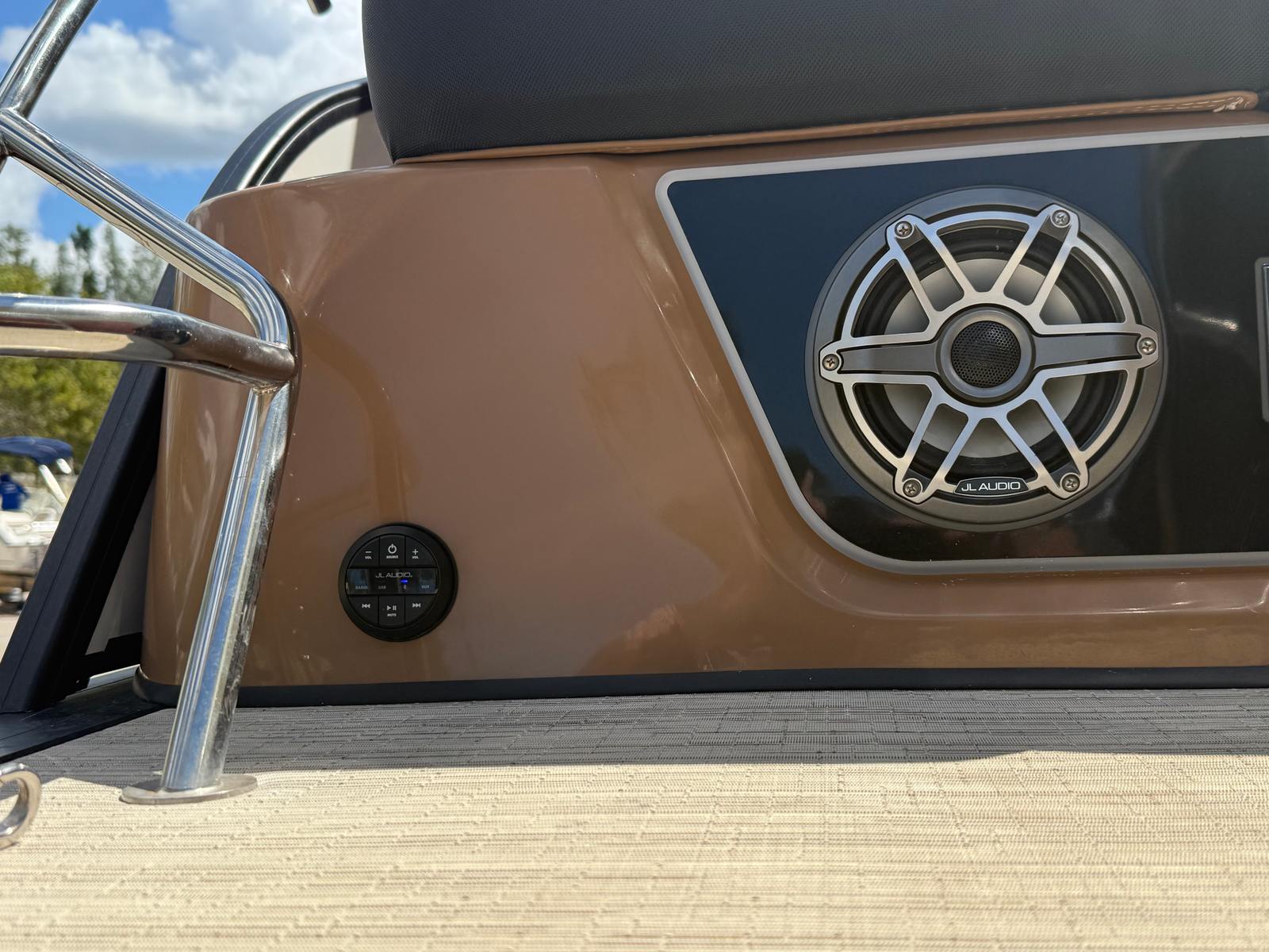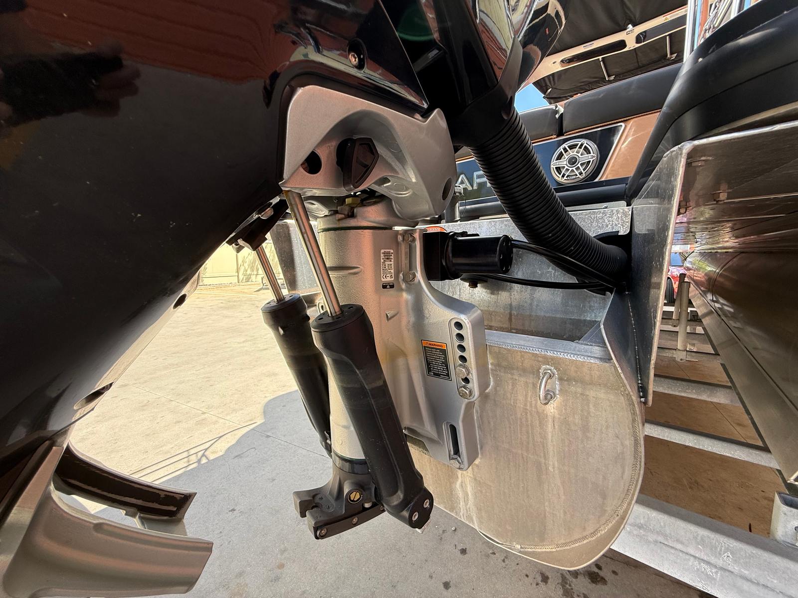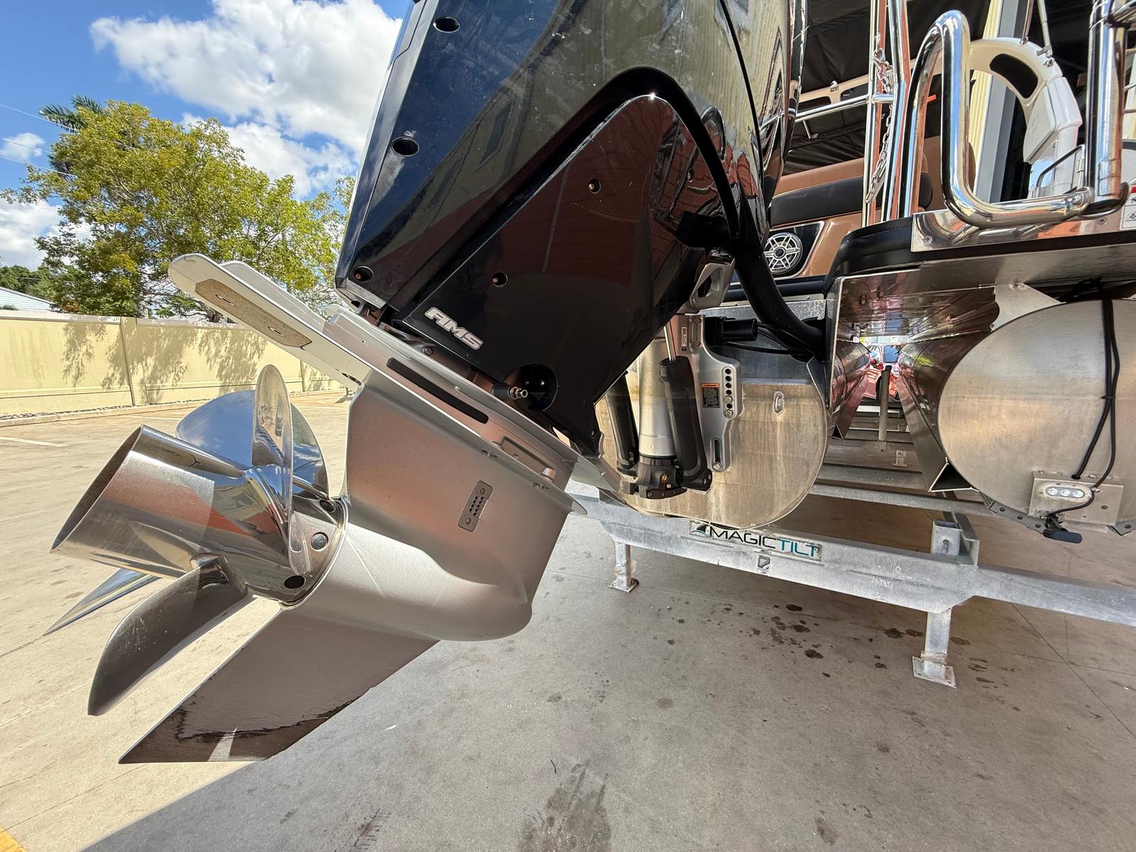 New to the market (9/2025), this 2024 Harris Grand Mariner 250 does not disappoint!! She is powered by a Mercury 350L V10 Verado with only 38 HOURS. She has a Collapsible Tower with Power Lift...press of a button at the Helm. Her Chestnut Brown upholstery with ONYX accents is stunning. She has double Captains Chairs with U-Lux (Hiback) and elevated Helm. Operating this GEM is extremely smooth with her Mercury Power Assist Steering.