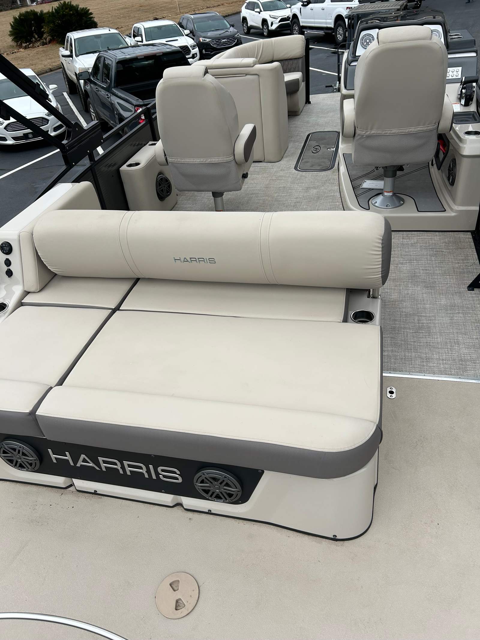 The 2022 Harris Solstice 230 is designed with comfort, convenience, and fun in mind. Its spacious deck layout allows for easy movement and socializing, making it ideal for gatherings and celebrations. The pontoon’s plush seating invites relaxation, while the thoughtfully arranged helm ensures intuitive control and visibility for the captain. The Solstice 230’s premium construction materials and attention to detail are evident throughout, from the stylish exterior to the comfortable, well-appointed interior.Special features of this Harris boat for sale include a powerful 250-horsepower engine, a generous 26.17-foot length, and a low 50 engine hours, all contributing to its outstanding performance and longevity. The pontoon’s design maximizes usable space, offering plenty of room for guests, gear, and recreational equipment. Every detail is crafted to enhance your time on the water, whether you are hosting a party or enjoying a quiet afternoon cruise.