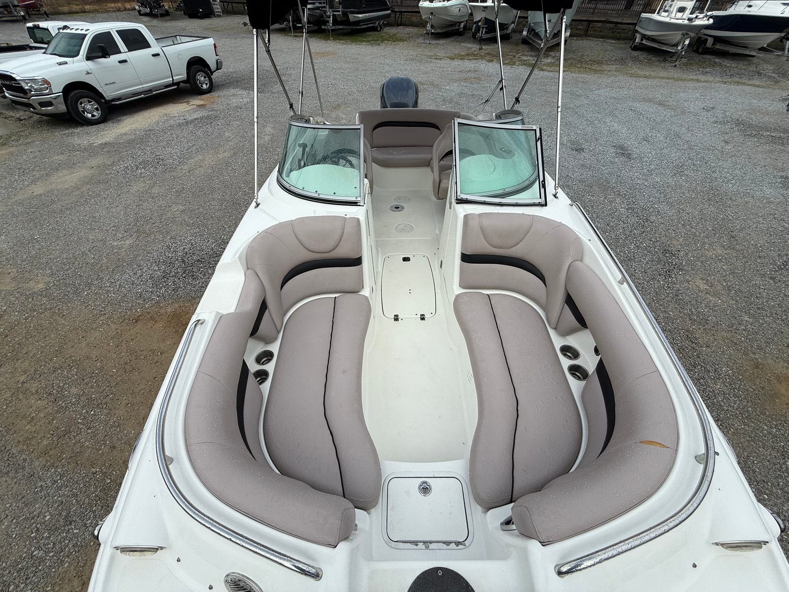 The Hurricane Sundeck 2200 DC OB is packed with features that enhance both functionality and comfort. As a dual console model, it offers a spacious and well-thought-out layout, providing plenty of seating and storage options for you and your guests. The center console design allows for easy movement around the deck, making it convenient for fishing, socializing, or simply enjoying the view. The boat’s durable construction and quality materials ensure long-lasting performance and a stylish appearance that stands out on the water.With a length of 22 feet, this Hurricane boat for sale offers generous deck space, allowing everyone on board to relax and enjoy the ride. The thoughtful design includes multiple seating areas, making it perfect for entertaining family and friends. The ample storage compartments help keep your gear organized and out of the way, ensuring a clutter-free environment for all your activities.