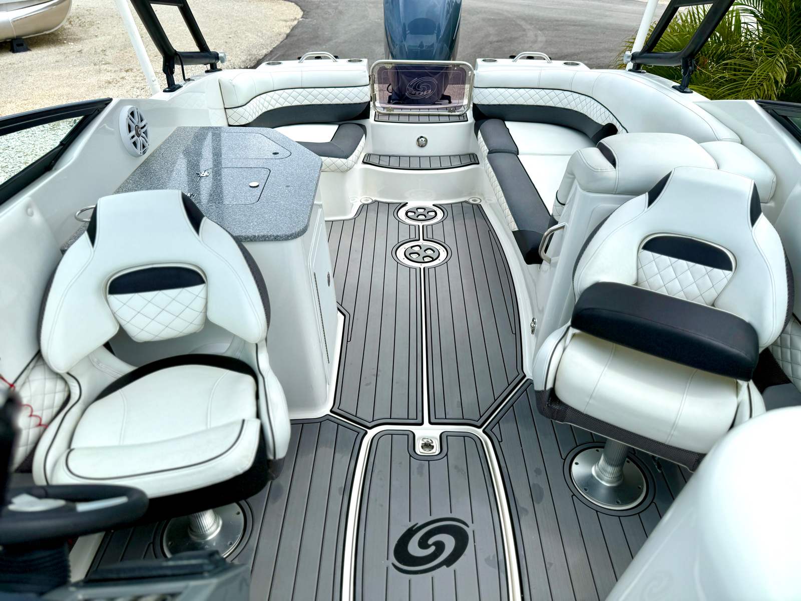 This Hurricane boat for sale truly shines in a variety of scenarios. Imagine taking your family out for a day of swimming, sunbathing, and picnicking on the open water. The spacious deck and comfortable seating make it easy to relax and enjoy each other’s company. For fishing enthusiasts, the Sundeck 2690 OB offers plenty of room to cast lines and store your catch, while the powerful engine ensures you can reach your favorite fishing spots with ease. If you’re looking for excitement, the boat’s performance capabilities make it perfect for towing water toys or exploring new waterways. Whether you’re seeking a luxurious escape or an action-packed adventure, this Dual Console boat adapts to your needs and delivers unforgettable experiences.