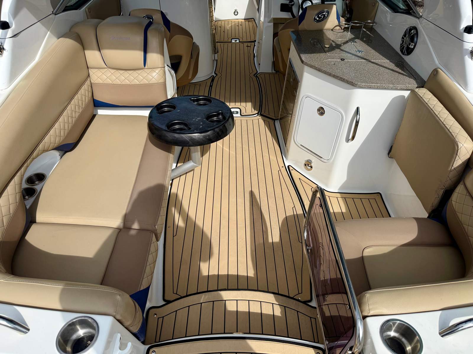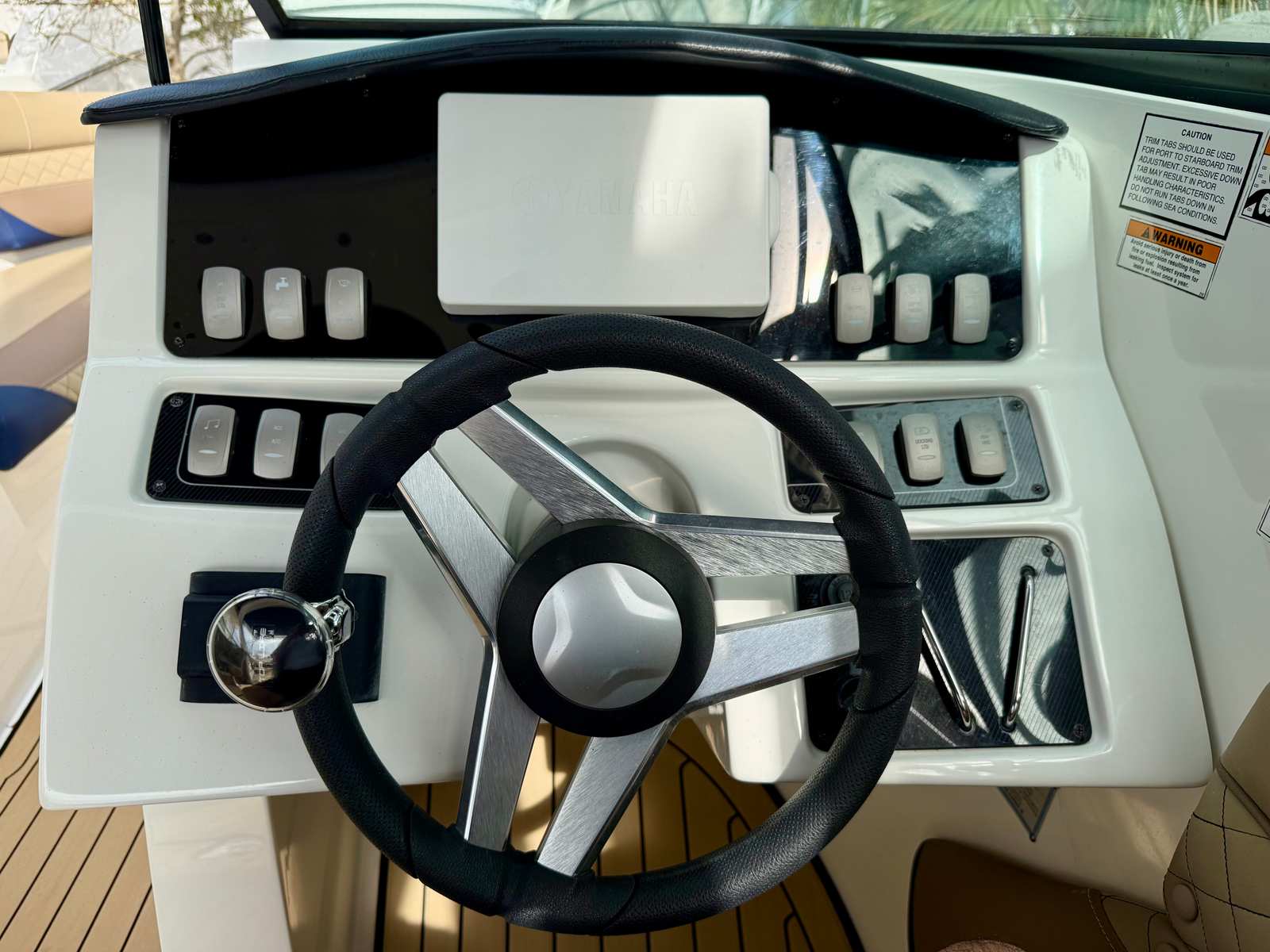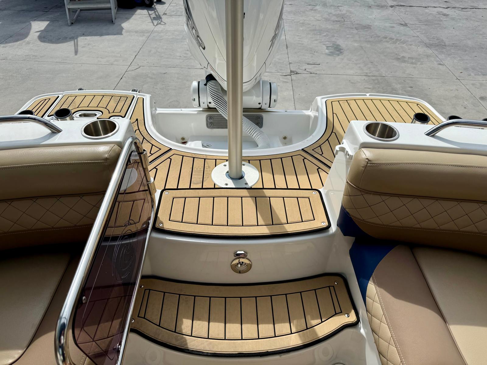 She is powered by a Yamaha 425HP outboard with approximately 250 hours, delivering strong, reliable performance whether you’re cruising the intracoastal, pulling water toys, or making a quick run to your favorite sandbar. At the helm, the boat is equipped with Yamaha CL7 digital gauges, providing clear, easy-to-read engine data and system information for confident operation.