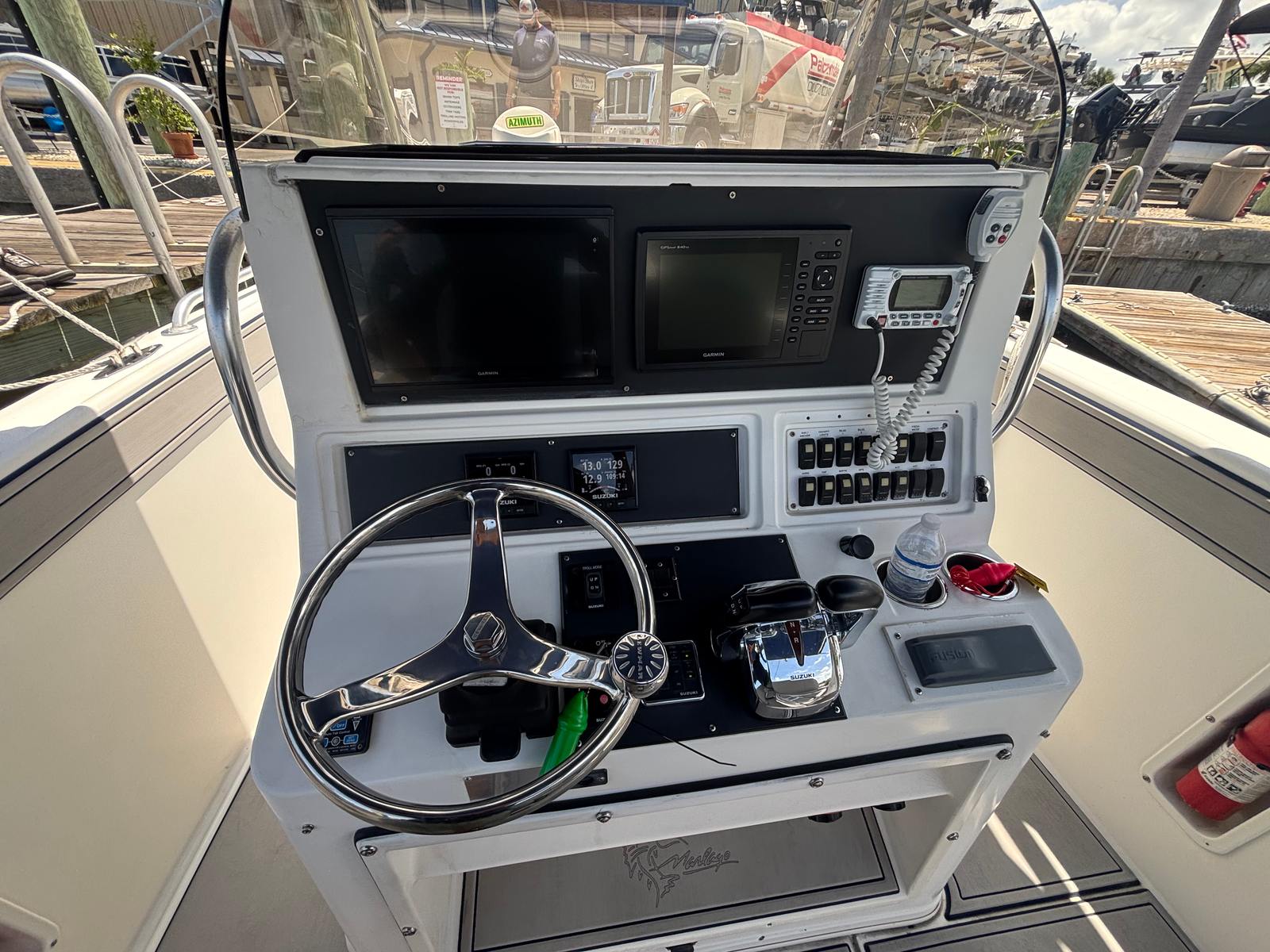 Powering the Jefferson Marlago FS31 are two engines, delivering a combined 400 horsepower. With only 150 engine hours, these motors have plenty of life left, ensuring you can enjoy countless adventures without worry. The dual-engine setup provides excellent acceleration, responsive handling, and the ability to tackle a variety of water conditions with confidence. Whether you’re cruising along the coastline, heading out for a day of fishing, or exploring new destinations, the Marlago FS31’s performance capabilities make every outing smooth and enjoyable. The center console design further enhances visibility and control, allowing you to maneuver with ease and precision.
