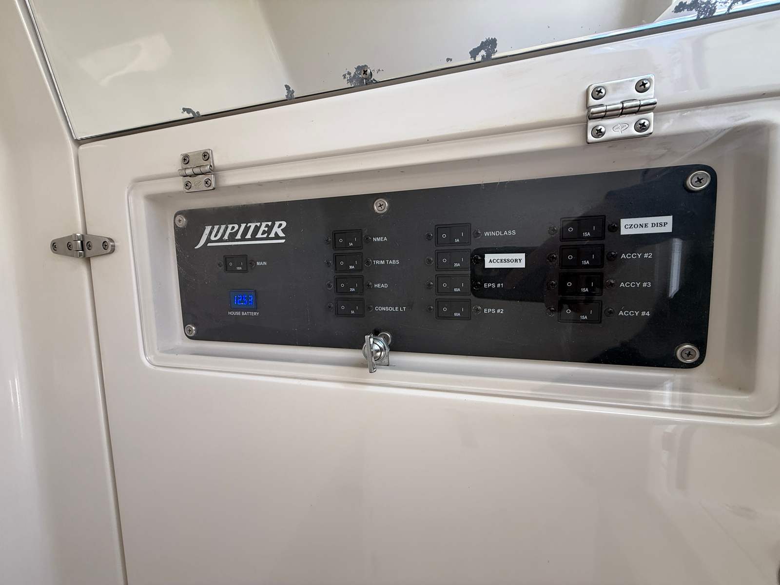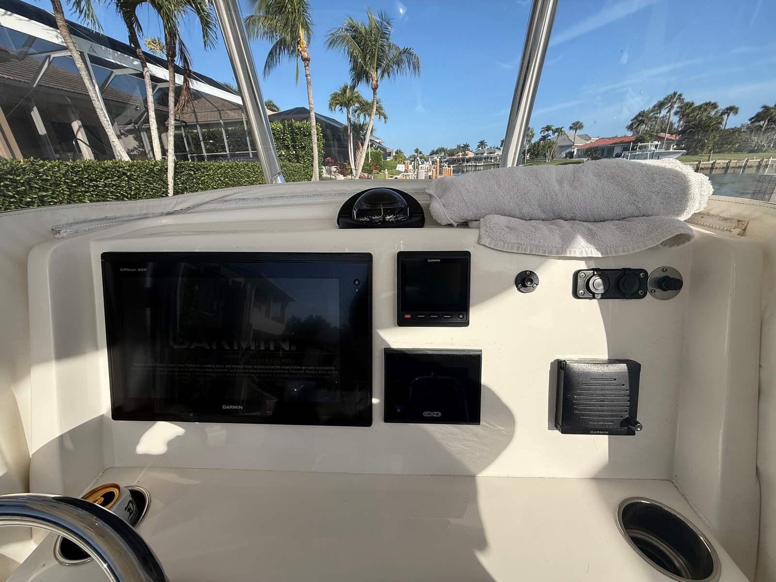 Powering this Jupiter 30 HFS are twin engines delivering a combined 600 horsepower, ensuring exhilarating acceleration and impressive top-end speed. The dual-engine setup provides enhanced reliability and control, making it easy to navigate both calm bays and offshore waters. With just 195 engine hours, these engines have plenty of life left, offering peace of mind and dependable performance for years to come. Whether you’re chasing the next big catch or cruising with friends and family, this Center Console boat for sale delivers the power and agility you need for any adventure.