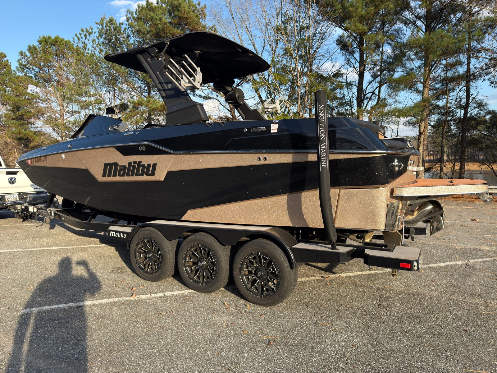 This 2022 Malibu M240 was just traded into us and is ready for its next family to make memories with. The M240 is the baddest of the bad when it comes to wake surfing. You have to see this boat in action! Notable features include: -Monsoon LT4 engine (118 hours) -GX Power Tower with mister system -2 pairs of WETSOUNDS Rev 10s on the tower -TWO 12 inch subwoofers -5 outlet heater system -Rear thruster -Power helm seat -Flip down swim step -Wakeview bench seat and table -Cool touch interior -Much more to list Price shown includes a triple axle trailer. Price is including financing with Singleton Marine. Extended warranties available and factory warranty available for transfer.