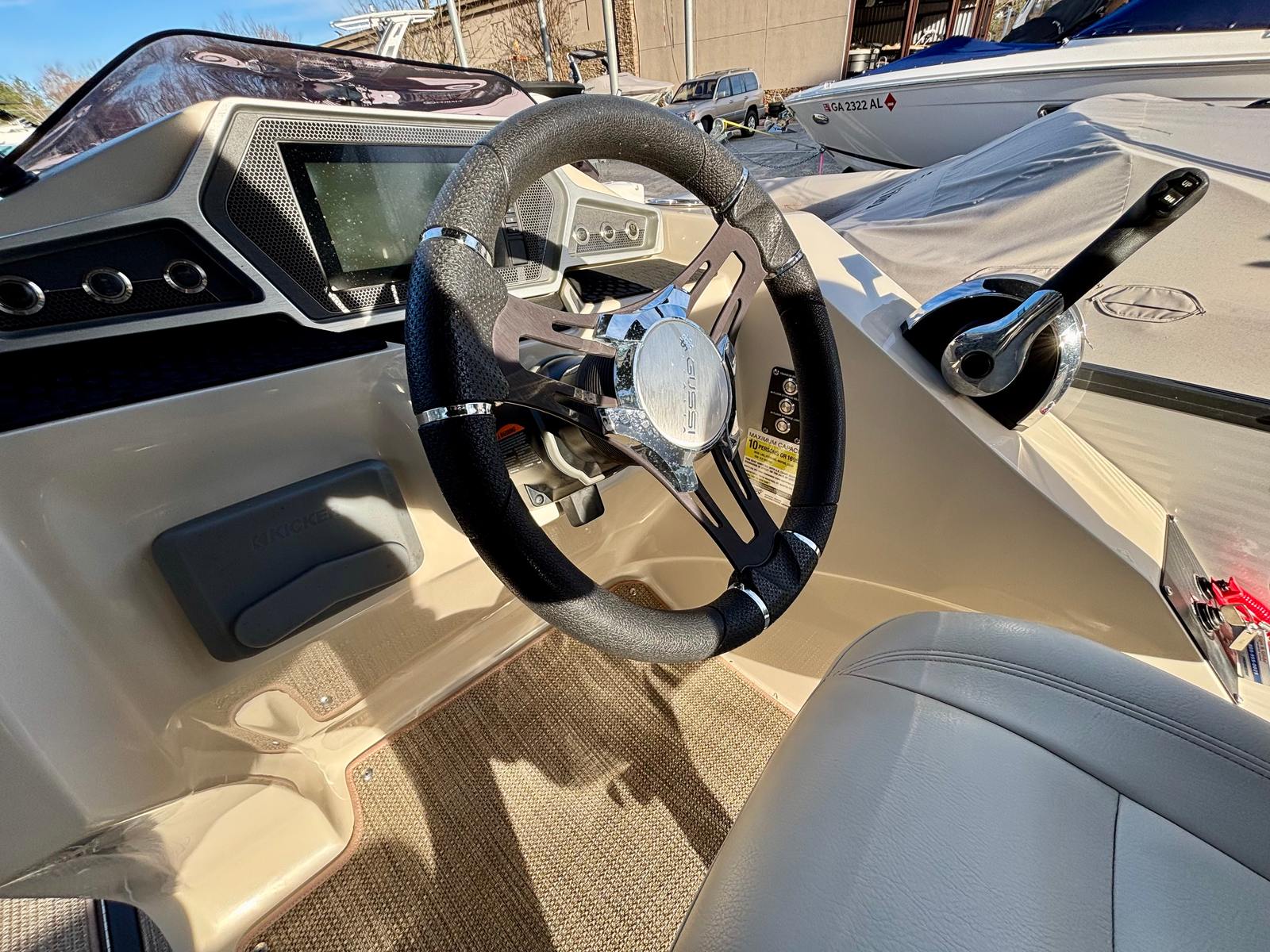 This Manitou pontoon boat is perfect for a wide range of activities and occasions. Imagine setting out for a family fishing trip, with everyone enjoying the comfort and convenience of a boat designed with anglers in mind. Or picture a leisurely cruise with friends, basking in the sun and taking in the scenery from the spacious deck.The Manitou Oasis Angler 220 SHP also excels as a platform for water sports, thanks to its powerful engine and stable hull. Whether you are towing a tube, teaching the kids to fish, or hosting a sunset cocktail party on the water, this boat adapts to your needs and elevates every experience.