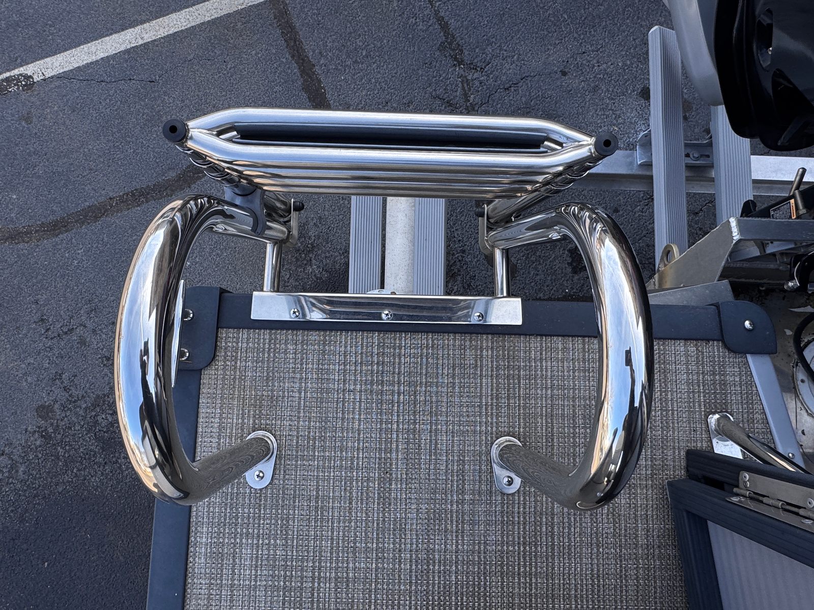 Powering the Manitou Oasis Angler 220 SHP is a robust 250-horsepower engine with only 95 hours of use. This single-engine setup delivers impressive acceleration and smooth handling, ensuring you can navigate lakes, rivers, and coastal waters with confidence. The SHP (Sport Handling Package) hull design is engineered for superior stability and agility, allowing you to enjoy thrilling rides and tight turns while maintaining a comfortable and secure experience for everyone onboard. Whether you are towing water toys, heading to your favorite fishing spot, or simply cruising at sunset, the performance of this pontoon boat will exceed your expectations.