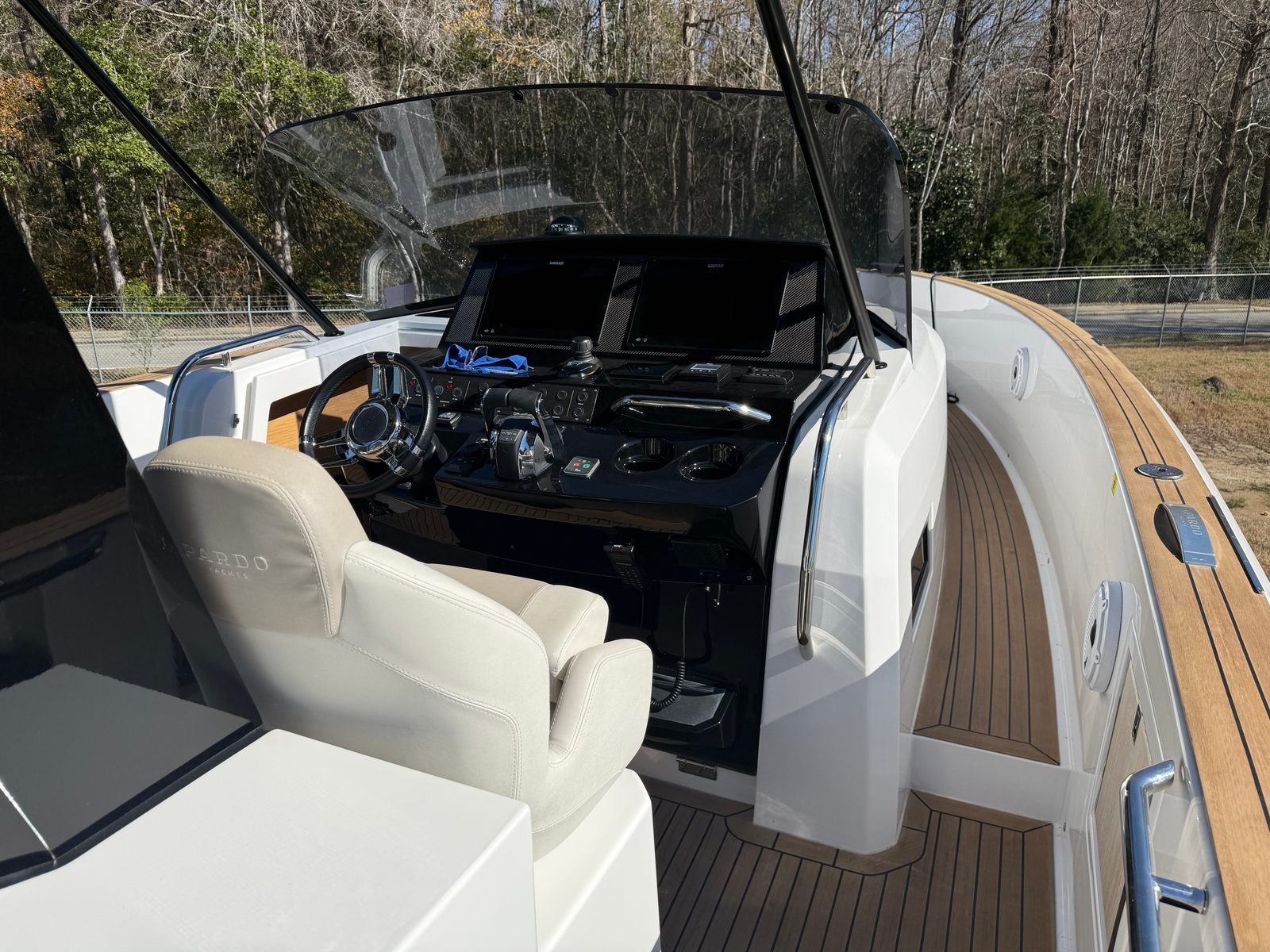 The Pardo Yachts 38 Walkaround is designed with both luxury and practicality in mind. Its walkaround configuration provides easy access to all areas of the deck, making it perfect for socializing, sunbathing, or simply enjoying the open water. The spacious cockpit and wide side decks ensure safe and comfortable movement throughout the boat, while the stylish helm station offers excellent visibility and intuitive controls.Inside, the Pardo 38 features a thoughtfully designed cabin that maximizes space and comfort. High-quality materials and finishes create an inviting atmosphere, perfect for relaxing after a day on the water. The attention to detail is evident in every aspect of the boat’s design, from the ergonomic seating to the ample storage options that keep your gear organized and accessible.