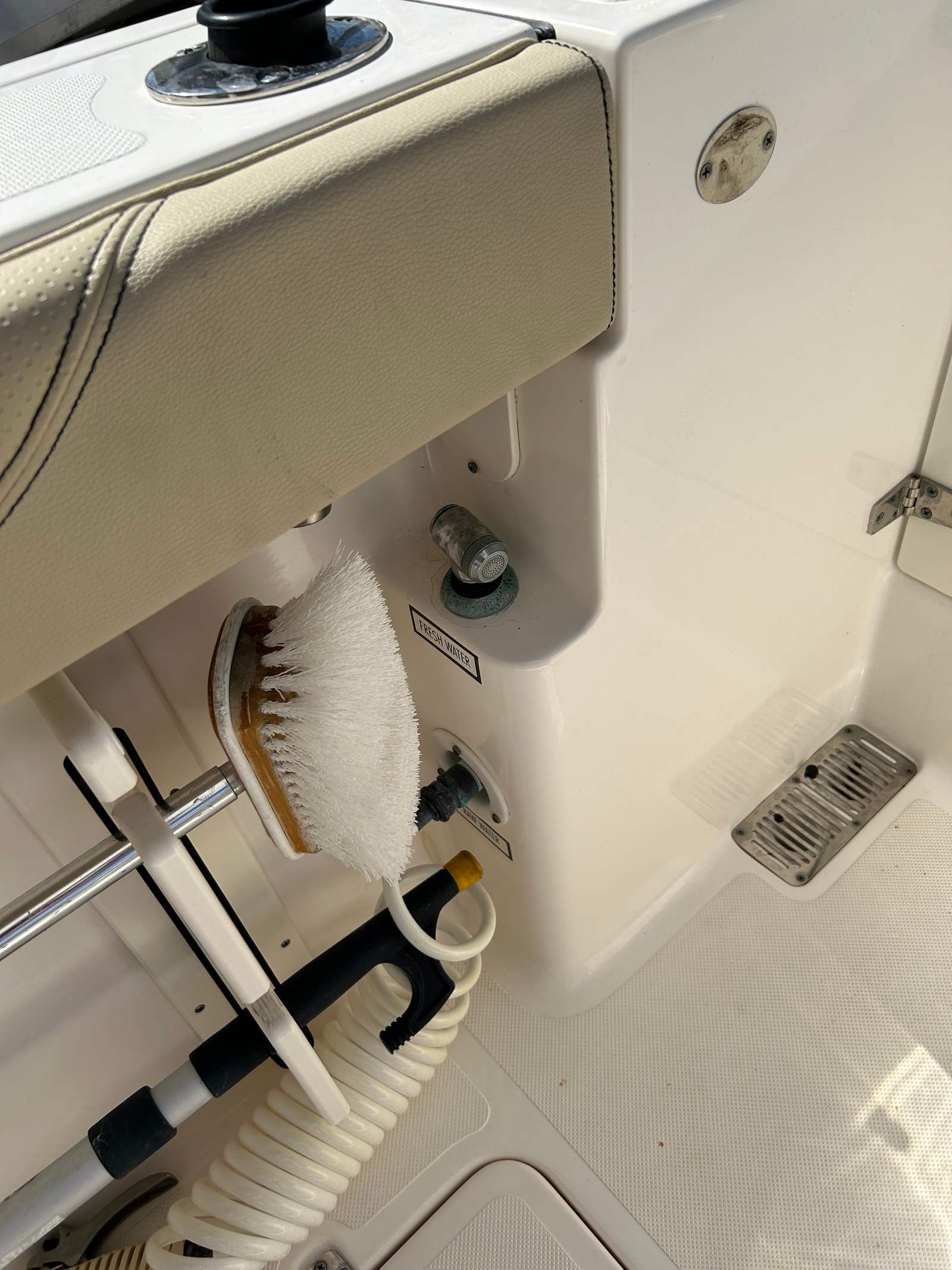 Powering this Pursuit DC 325 are twin engines, delivering a combined 600 horsepower for exhilarating performance and smooth cruising. Whether you’re navigating coastal waters or heading offshore for a day of adventure, the DC 325’s robust engine setup ensures you have the power and reliability you need. With only 237 engine hours, these engines offer plenty of life and dependable operation, giving you peace of mind as you explore new horizons. The dual engine configuration also enhances maneuverability and control, making docking and tight turns effortless.