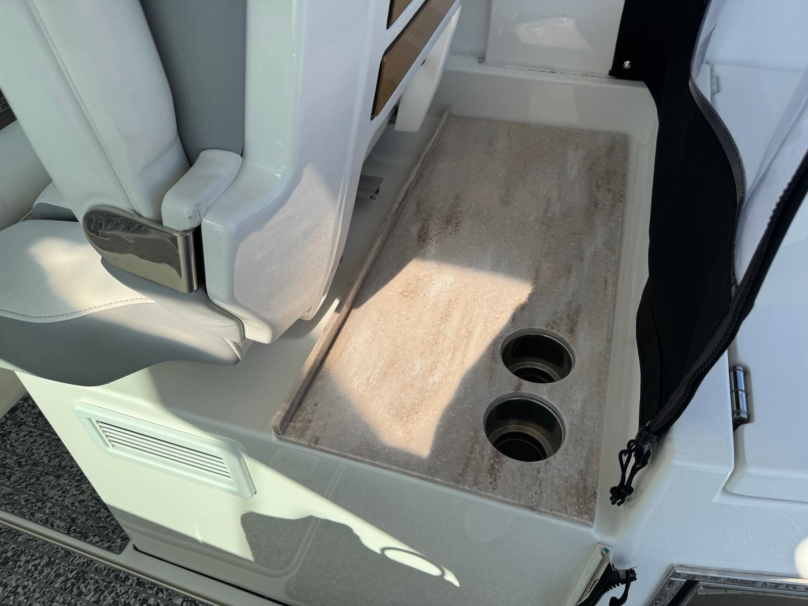 The Pursuit DC 326 is designed with both luxury and practicality in mind. Its dual console layout offers exceptional versatility, allowing for seamless transitions between cruising, fishing, and entertaining. The spacious cockpit and bow seating areas provide plenty of room for guests to relax and enjoy the ride. High-quality materials and finishes are evident throughout, from the comfortable seating to the stylish helm station. The boat’s thoughtful design ensures that every inch of space is utilized efficiently, making it easy to move around and access all areas of the vessel.