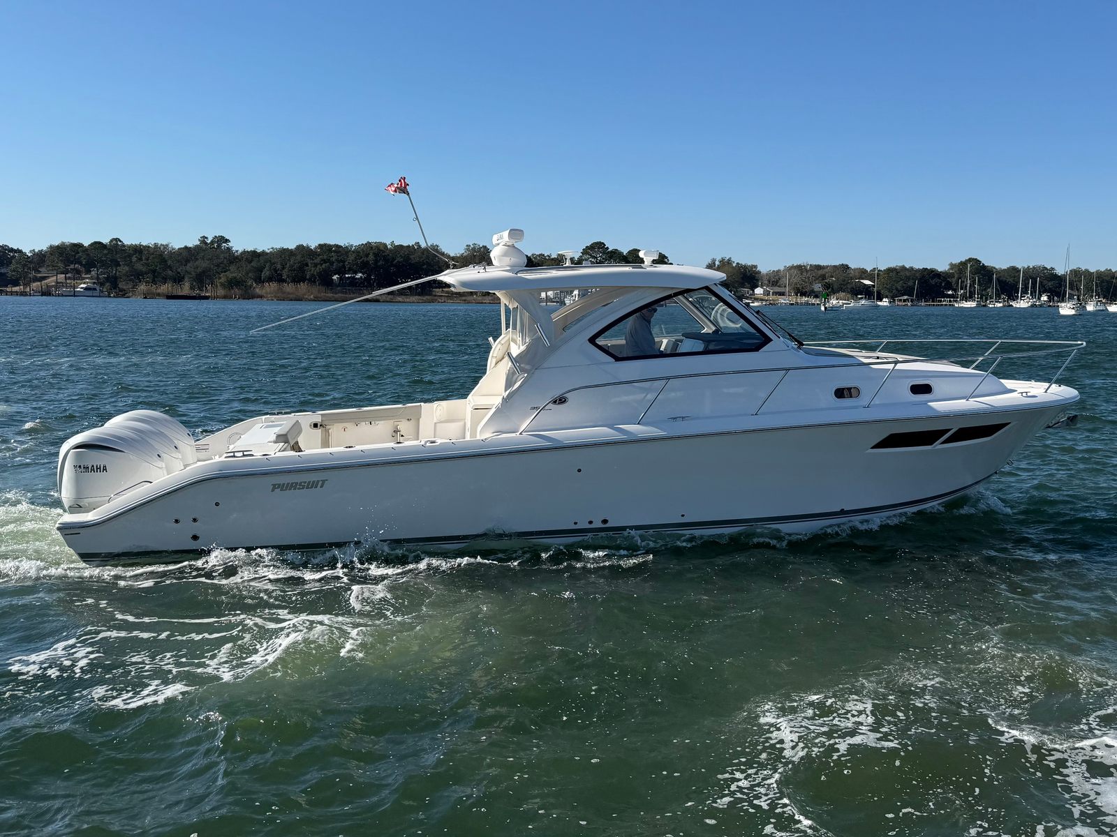 The 2024 Pursuit OS 355 Cruiser is a remarkable vessel that offers the perfect blend of power, luxury, and practicality. With its triple-engine configuration, 900 horsepower, low engine hours, and spacious design, this used Pursuit boat for sale is an outstanding opportunity for boating enthusiasts. Whether you are seeking adventure, relaxation, or a versatile platform for family and friends, the Pursuit OS 355 delivers on every front.Don’t miss your chance to own this exceptional cruiser boat for sale. Experience the thrill, comfort, and enjoyment that only a Pursuit boat for sale can provide. Contact the dealer today to learn more about the Pursuit OS 355 and take the first step toward your next unforgettable boating adventure.