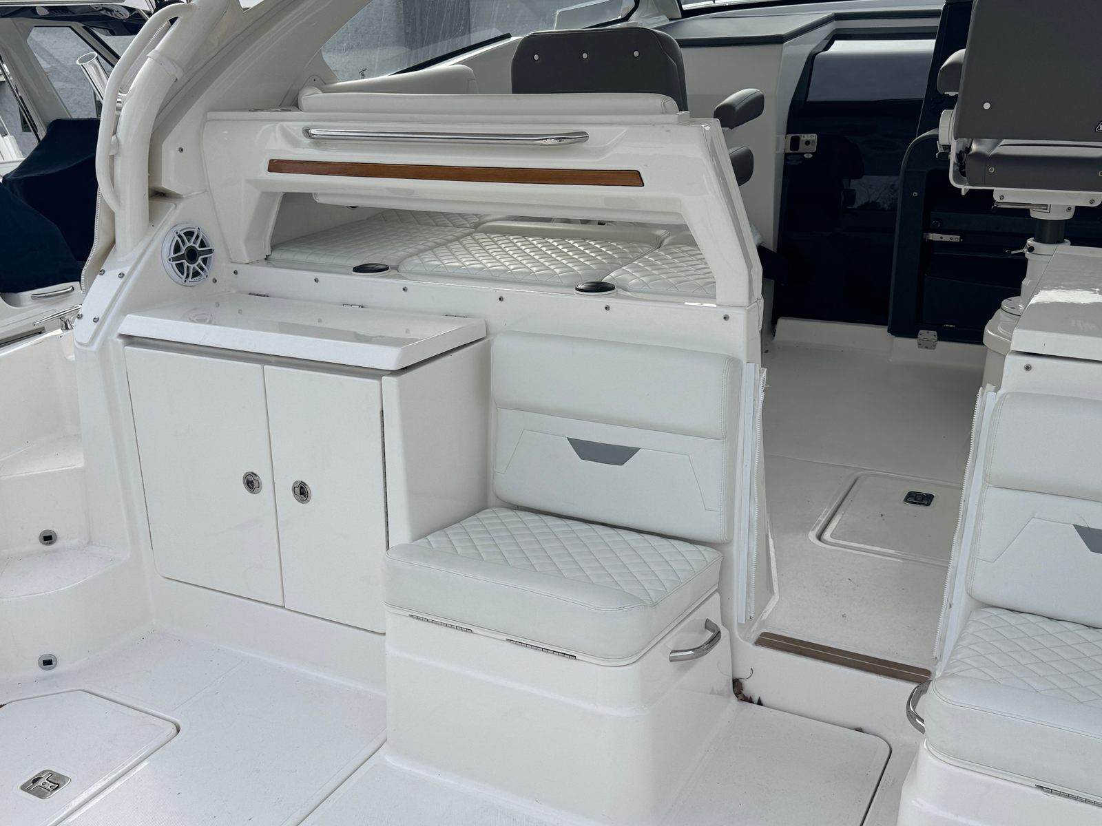 In addition to its recreational appeal, the Pursuit 405 OS offers practical benefits that make ownership a pleasure. The ample storage space ensures you can bring along all your gear, from water toys to fishing equipment. The boat’s design makes docking and maneuvering straightforward, even for those new to boating. Fuel efficiency is optimized by the advanced engine technology, allowing you to spend more time on the water and less at the fuel dock.Maintenance is simplified thanks to Pursuit’s reputation for reliability and quality construction. The 405 OS is built to withstand the rigors of regular use, so you can focus on enjoying your time on board. Whether you’re planning extended trips or spontaneous outings, this cruiser boat for sale is ready to accommodate your needs.