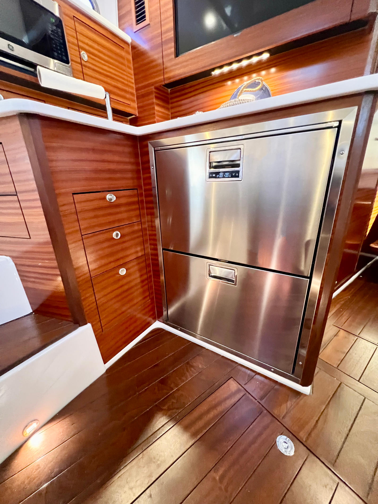 Powering the Pursuit OS 405 are three high-performance engines, delivering a combined 1350 horsepower. This triple-engine setup ensures exhilarating acceleration, smooth cruising, and responsive handling in a variety of conditions. Whether you’re navigating coastal waters or venturing offshore, the Pursuit OS 405 provides the confidence and capability you need for any adventure. The advanced propulsion system allows for efficient fuel consumption and reduced noise, enhancing your overall boating experience. With this Pursuit boat for sale, you’ll enjoy the thrill of speed and the assurance of reliability every time you hit the water.