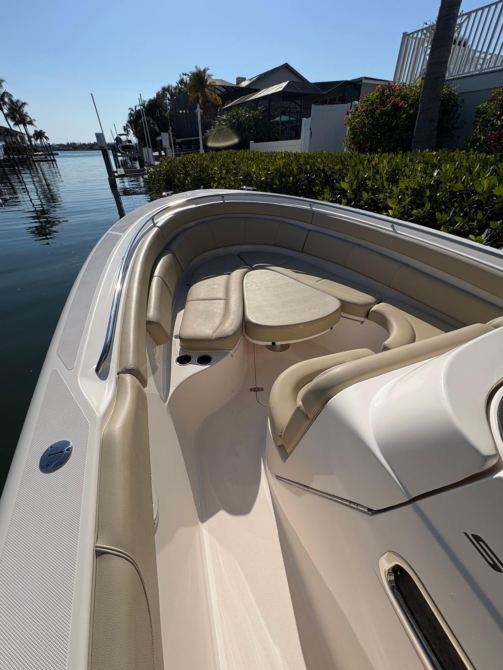 Inside the console, you’ll find a freshwater head and sink, giving you the convenience needed for longer days on the water. The Polk audio system provides excellent sound whether you’re underway or at anchor.