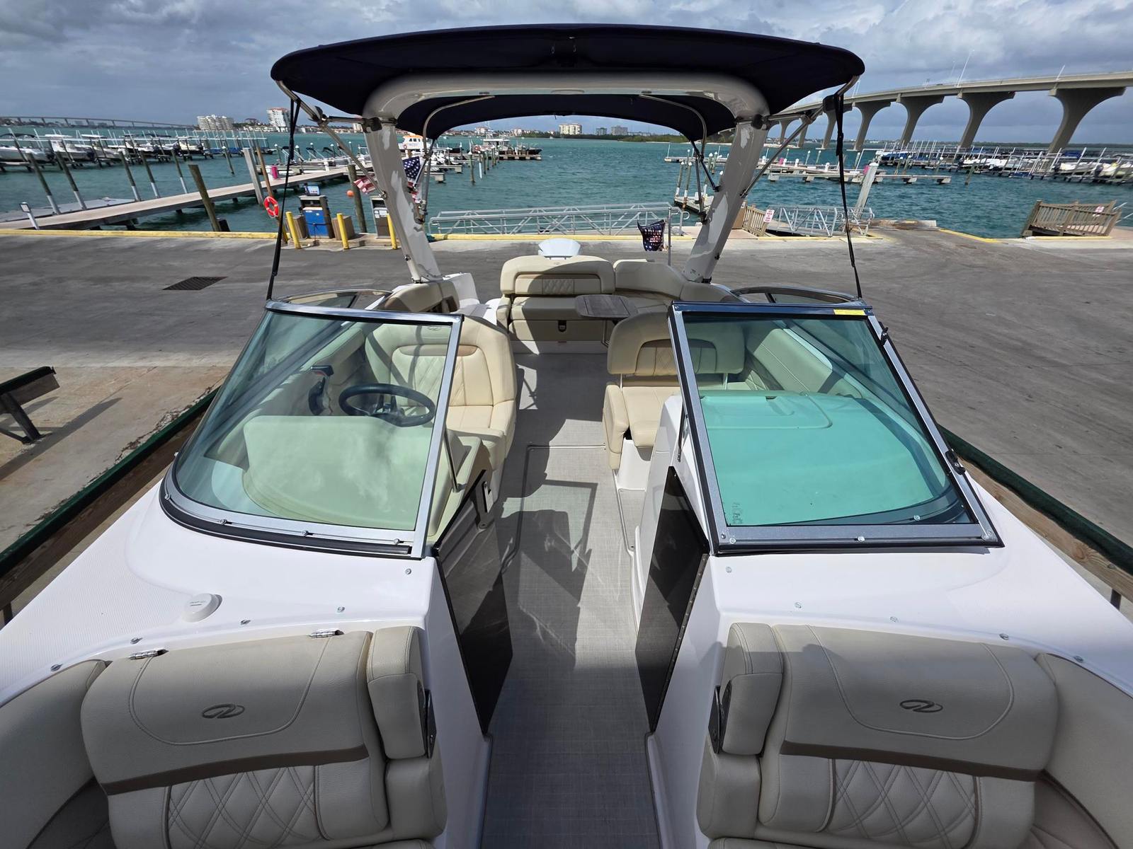 At the stern, the boat features a spacious swim platform, making water access easy and enjoyable. Whether you're swimming, launching water toys, or simply relaxing at the water’s edge, this area is designed for convenience and fun. The integrated swim ladder and well-placed storage compartments further enhance usability.