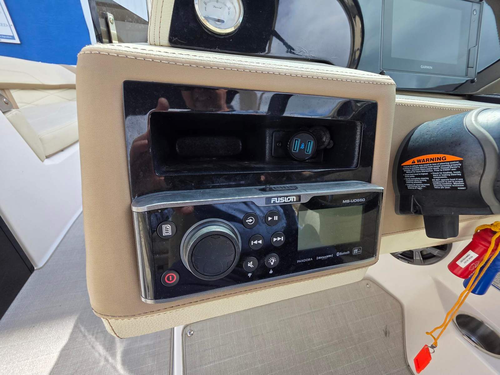 Music lovers will appreciate the premium Fusion stereo system, delivering rich, high-quality sound throughout the boat. Whether you're setting the mood for a relaxing cruise or energizing the day with your favorite playlist, the audio experience onboard is second to none.