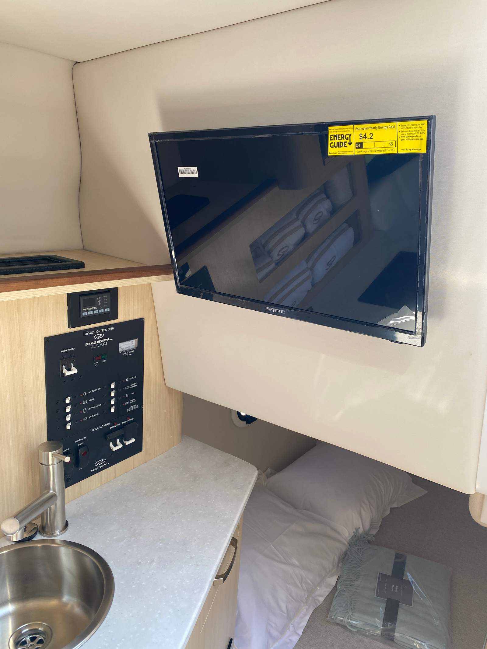 The Regal 26 XO is packed with special features that enhance both comfort and convenience. The bottom color in Tahiti Beach White not only adds a touch of elegance but also helps keep the hull looking pristine. The Titanium interior color provides a modern and luxurious feel throughout the cabin and cockpit. The aft vent is matched to the hull color, ensuring a cohesive and stylish appearance.For those who value protection from the elements, the cockpit cover and full enclosure offer excellent shelter, allowing you to enjoy your time on the water regardless of the weather. The cockpit seagrass mat adds a layer of comfort underfoot, making the deck a pleasant place to relax or entertain guests. The Snowcap and Coastal packages further enhance the boat’s appeal, providing additional style and functionality.A standout feature of the Regal 26 XO is the gas 110V generator, which allows you to power your onboard amenities and enjoy extended stays on the water without sacrificing comfort. Whether you are hosting friends for an evening cruise or spending a weekend away, this generator ensures you have the power you need for all your adventures.