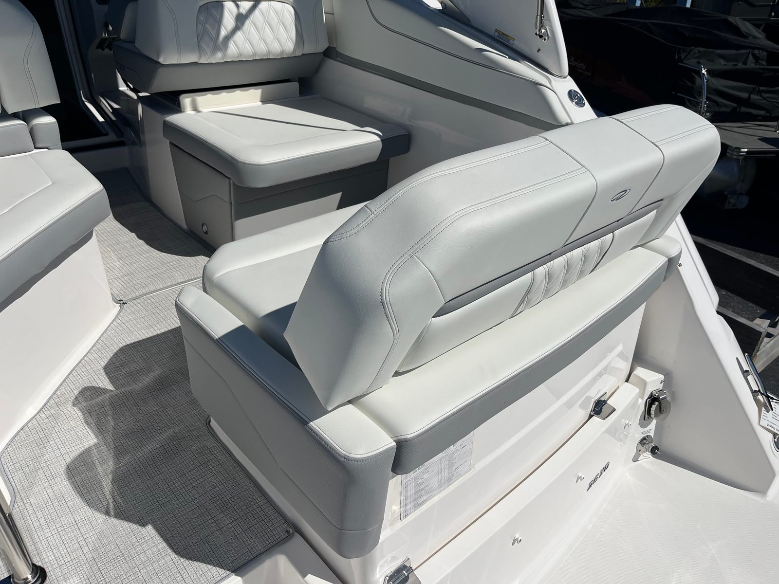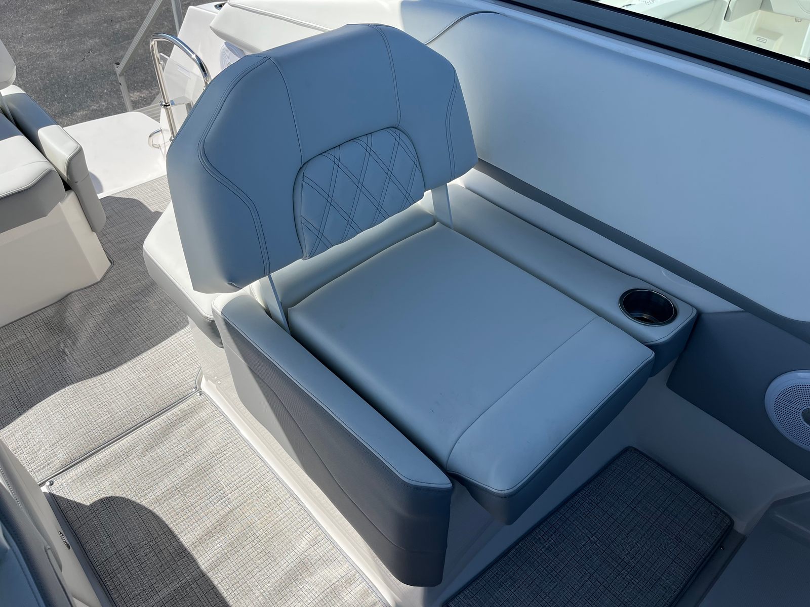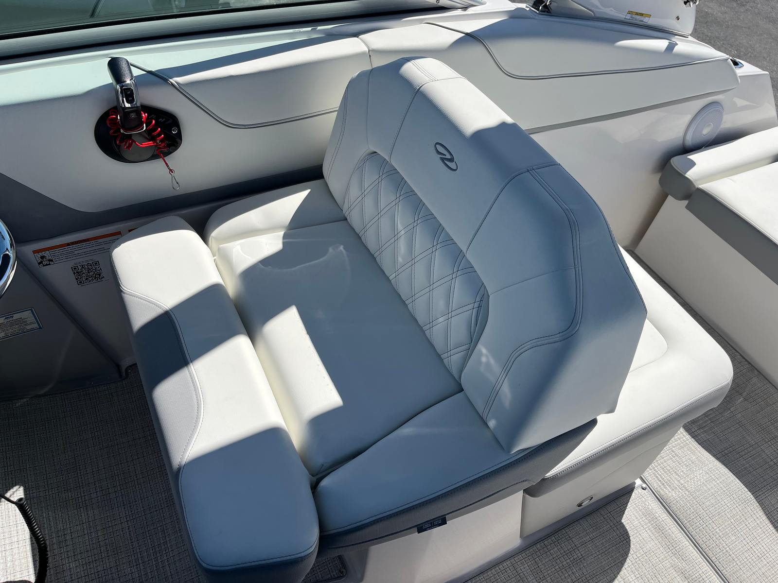 This Regal cruiser boat for sale is packed with premium features designed to enhance your boating experience. The hull color in Tahiti Beach White, paired with the black bootstripe and matching bottom, gives the boat a sophisticated and modern look. The aft vent matches the hull color for a seamless aesthetic, while the Titanium interior adds a touch of elegance and comfort. The cockpit is equipped with a Seagrass mat, providing a soft and stylish surface underfoot that’s perfect for barefoot relaxation.For added convenience and protection, the Regal 26 XO includes a cockpit cover and a full enclosure in black canvas. These features allow you to shield the cockpit from the elements, ensuring your boat stays clean and comfortable in any weather. Whether you’re enjoying a sunny day or seeking shelter from a passing shower, the full enclosure offers versatile options for year-round boating.