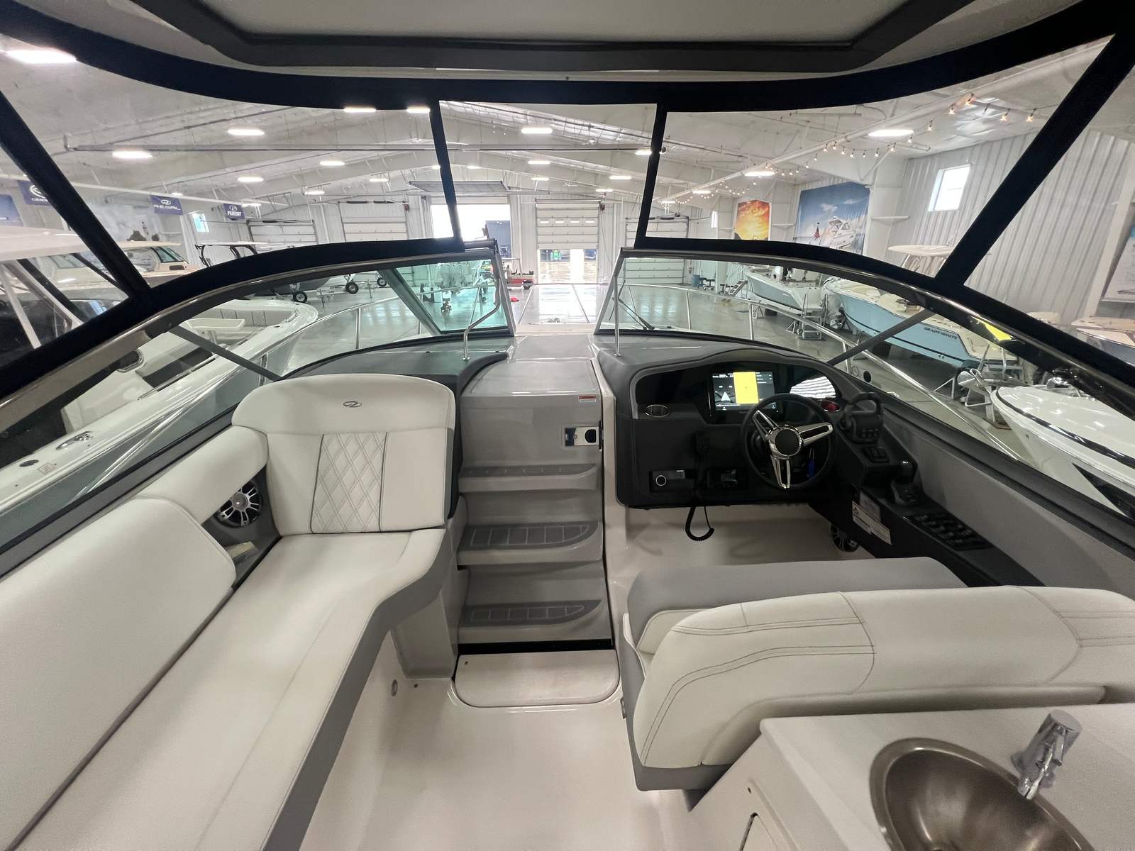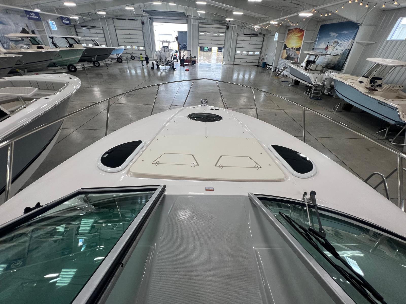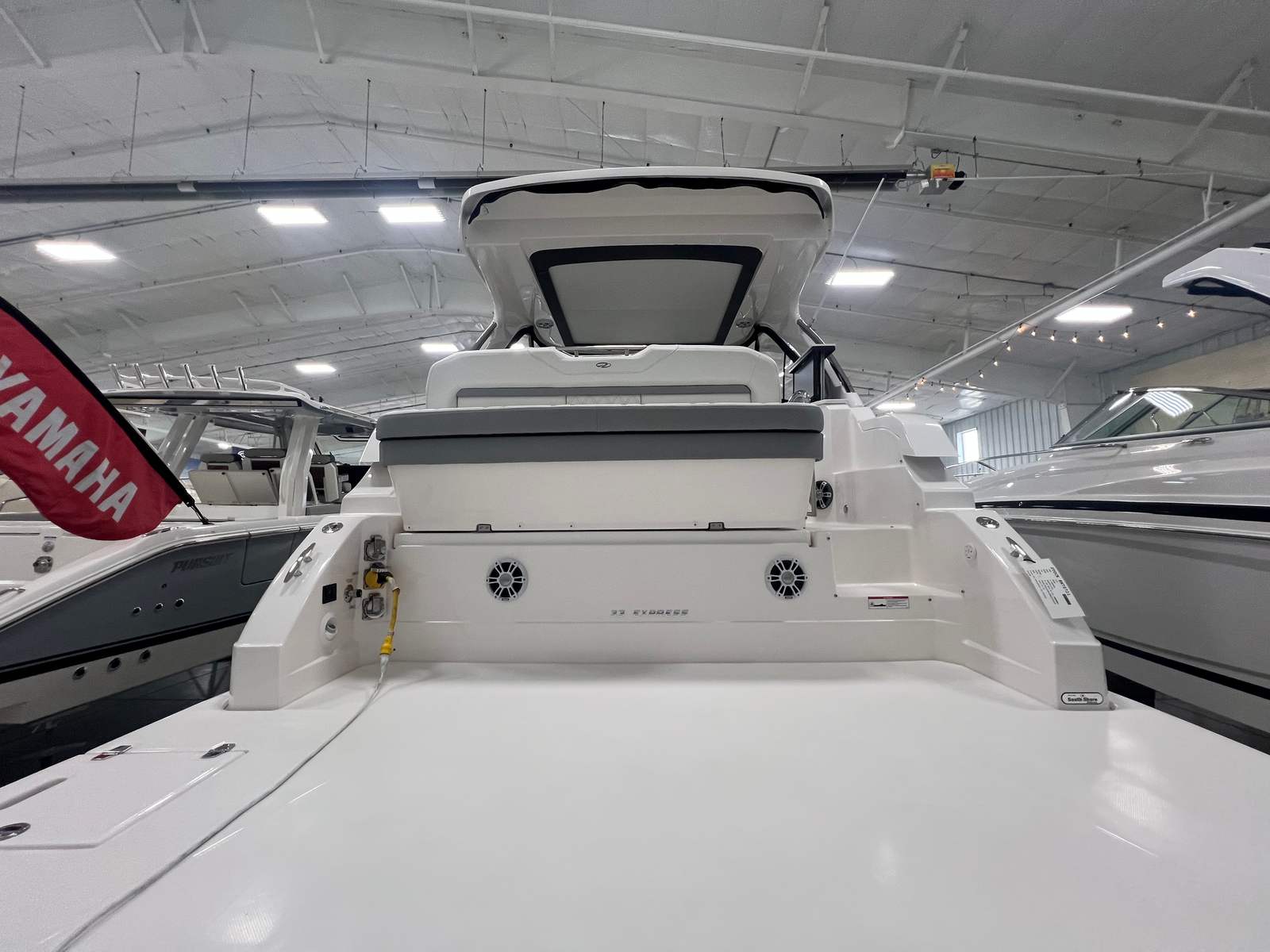 The Regal 33 Express is designed with practicality in mind, making ownership easy and enjoyable. The anchor windlass with all-chain operation streamlines the anchoring process, saving time and effort when you want to stop and enjoy the scenery. The cockpit refrigerator ensures your favorite beverages and snacks are always within reach, perfect for long days on the water.The companionway screen door enhances ventilation while maintaining comfort, and the cockpit seagrass mat provides a soft, non-slip surface for added safety. The boat’s length and layout offer generous storage options for gear, supplies, and personal items, helping you stay organized and prepared for any adventure.Docking is simplified by the cruiser’s responsive handling and dual-engine configuration, allowing for precise movements in tight spaces. The fuel-efficient design ensures you can spend more time exploring and less time refueling, making every trip more enjoyable and cost-effective.