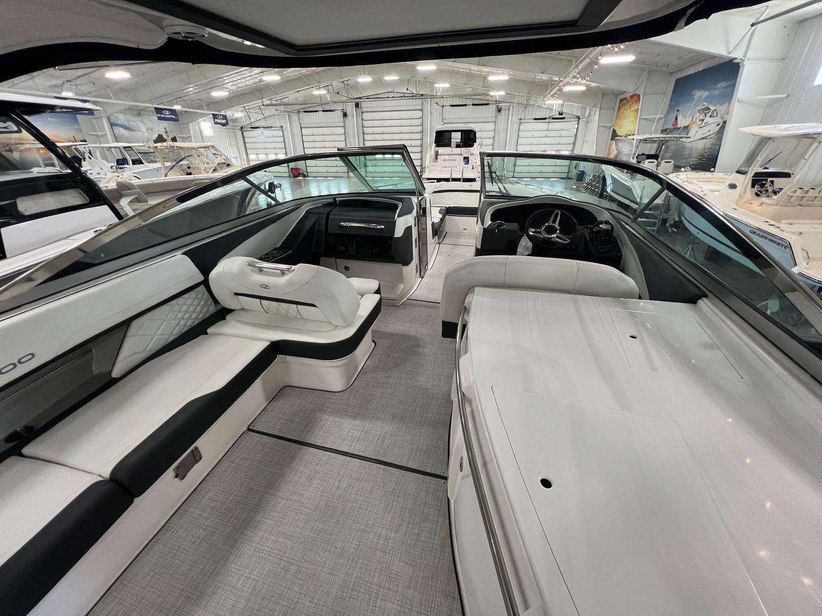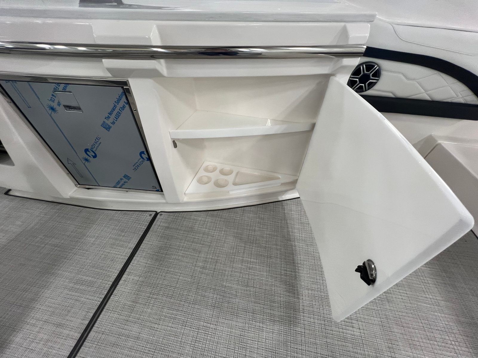 The 2026 Regal 3300 Bowrider is loaded with premium features designed to maximize comfort, convenience, and enjoyment. The Aft Cockpit Electric Sureshade for the hard top provides adjustable shade at the touch of a button, allowing you to relax in comfort no matter the weather. The anchor windlass with all-chain operation simplifies anchoring, giving you peace of mind when you want to stop and enjoy the scenery.Safety is a top priority, with an automatic fire extinguisher system offering added protection for you and your guests. The bow and cockpit covers keep your boat protected from the elements, while the bow walk-thru doors make moving between the bow and cockpit safe and easy. The cockpit refrigerator ensures your favorite refreshments are always within reach, and the cockpit seagrass mat adds a touch of luxury underfoot, enhancing the overall ambiance of the boat.