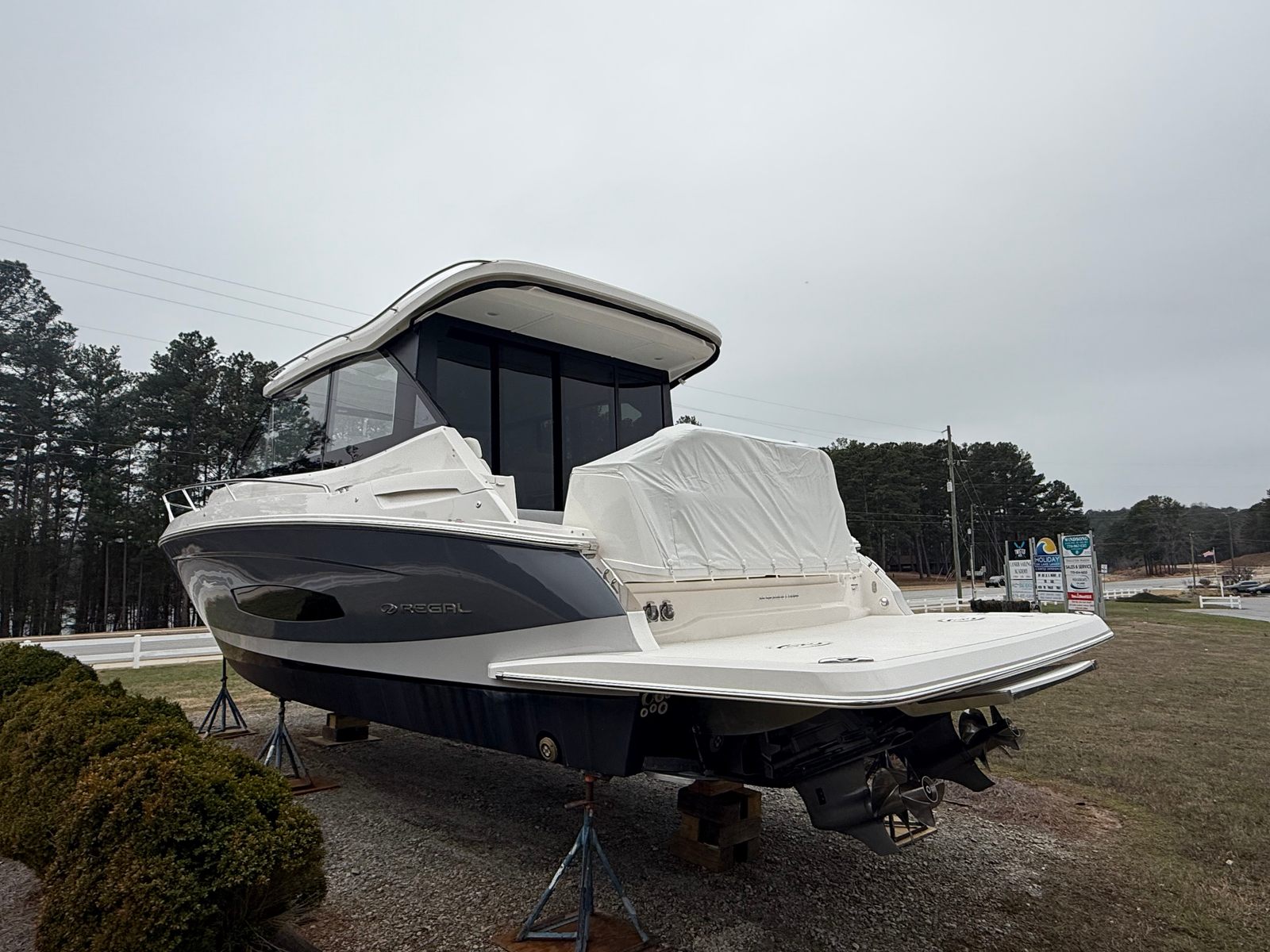 The 2026 Regal 36 Grande Coupe is a standout yacht boat for sale, offering a perfect blend of luxury, performance, and versatility. With its powerful twin engines, advanced features, and stylish design, this Regal boat for sale is ready to deliver unforgettable experiences on the water. Special features like the Aft Cockpit Canvas with IsinGlass Enclosure, Anchor Windlass, Bow Sunshade System, Central Vacuum System, Cockpit Freezer, and Cockpit Seagrass Mat set this yacht apart, ensuring comfort and convenience at every turn.If you are ready to elevate your boating lifestyle, the Regal 36 Grande Coupe is the ideal choice. Discover the joy of owning a new yacht that combines elegance, power, and practicality. Contact the dealer today to learn more about this exceptional yacht and make your dream of luxury boating a reality.