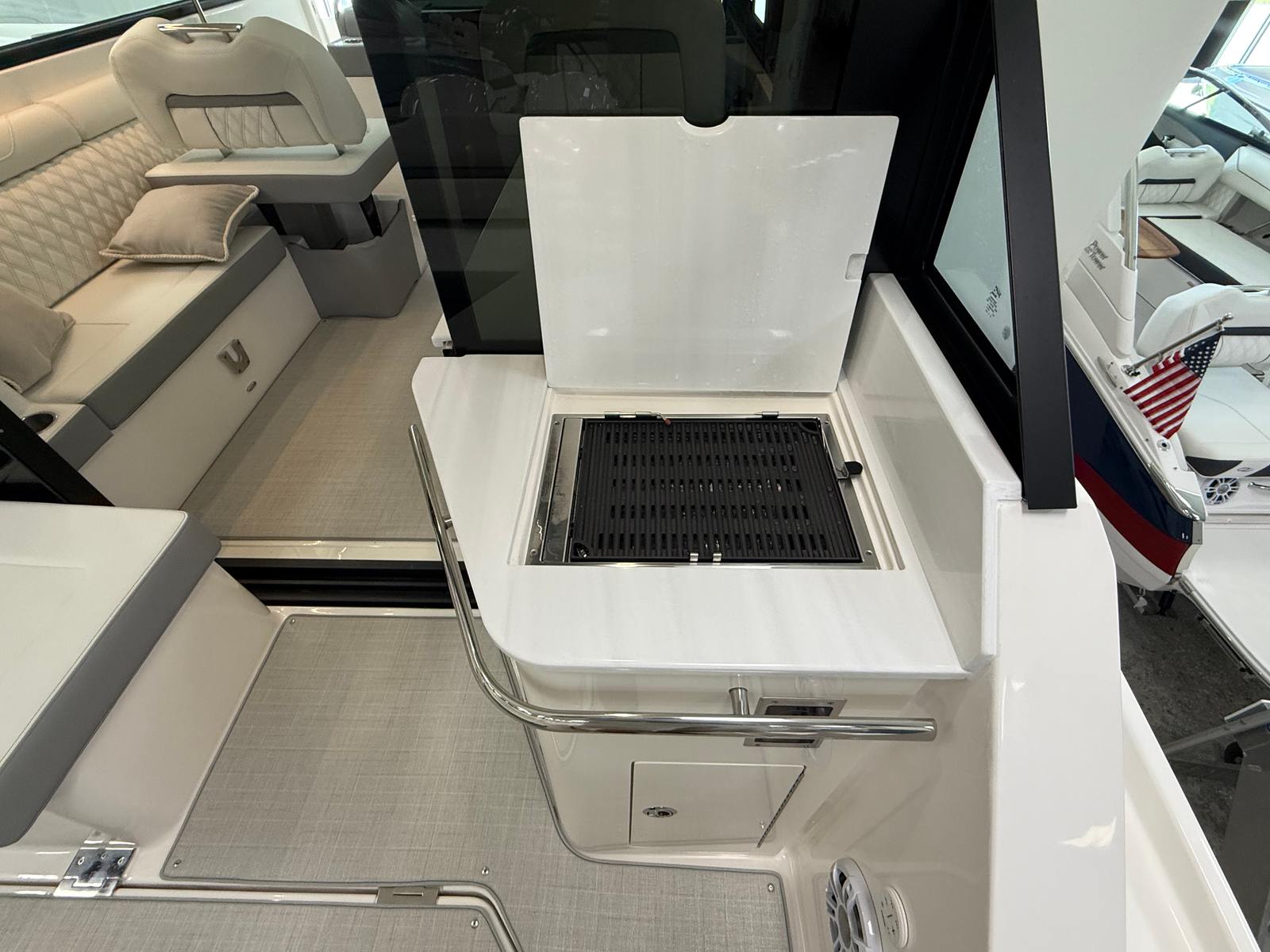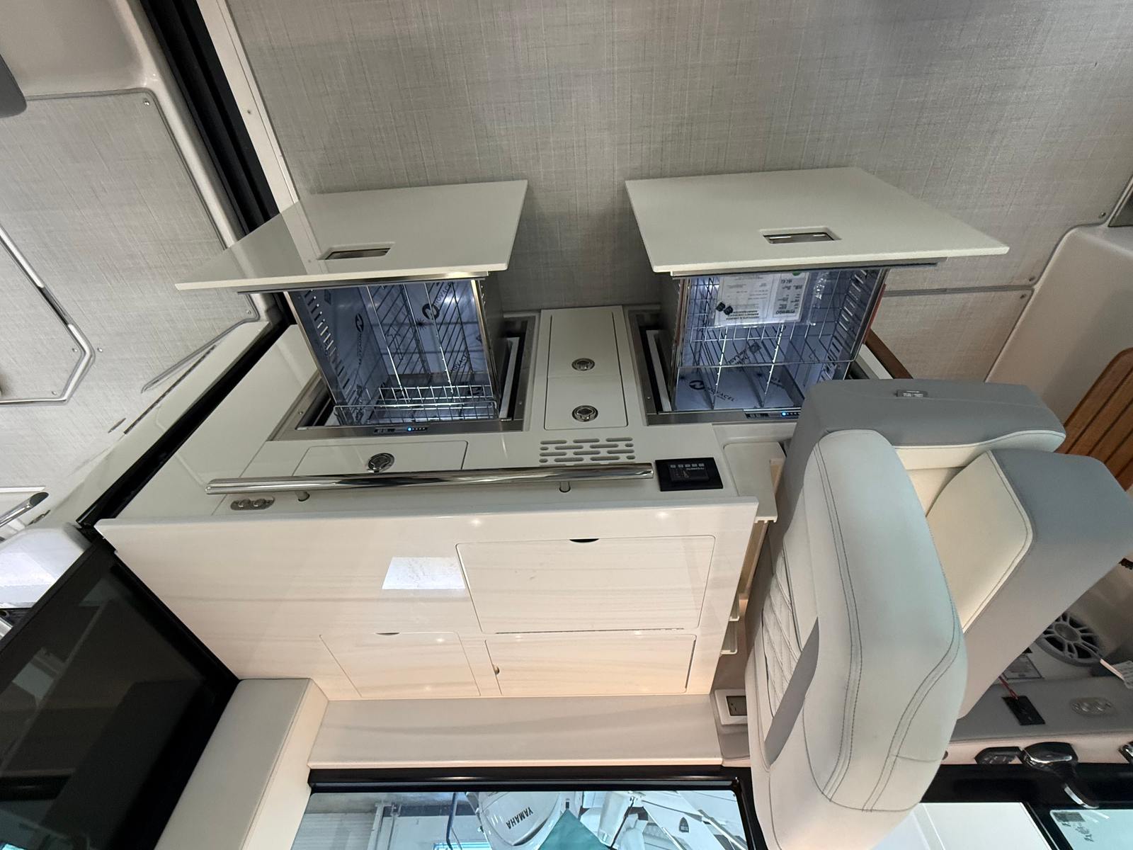 The Regal 36 XO is designed with practicality in mind, making ownership effortless and enjoyable. The yacht’s generous storage options allow you to stow gear, supplies, and personal items with ease, keeping the deck clutter-free and organized. Docking is simplified thanks to the yacht’s responsive handling and advanced navigation systems, ensuring stress-free arrivals and departures.Fuel efficiency is a hallmark of the Regal 36 XO’s engineering, allowing you to spend more time on the water and less time refueling. The onboard generator provides reliable power for all your appliances and electronics, so you can enjoy modern conveniences wherever you go. The durable cockpit upholstery and seagrass mat are easy to maintain, ensuring your yacht remains in pristine condition for years to come.
