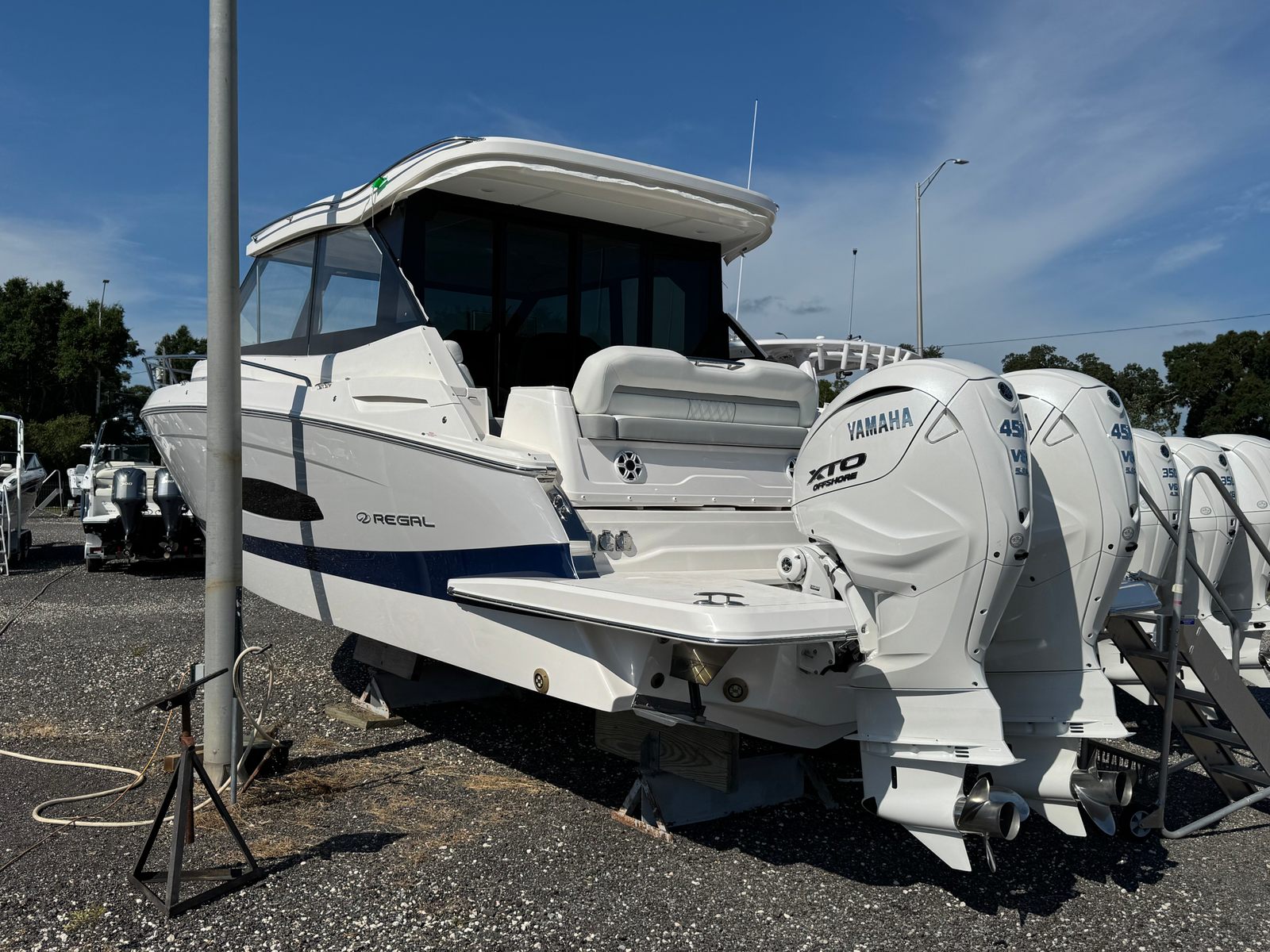The 2026 Regal 36 XO is a yacht boat for sale that delivers on every front—performance, luxury, and versatility. With its twin Yamaha F450UCA2 engines, striking Steel Gray hull, Mediterranean Blue bootstripe, Tahiti Beach White hull bottom, Titanium accents, and a suite of protective covers and enclosures, this Regal boat for sale is designed to impress and endure.If you are ready to elevate your boating lifestyle and enjoy the ultimate in comfort, style, and adventure, the Regal 36 XO is the perfect choice. Discover the possibilities and make every moment on the water unforgettable. Contact your local dealer today to learn more about this exceptional yacht and take the first step toward owning your dream boat.