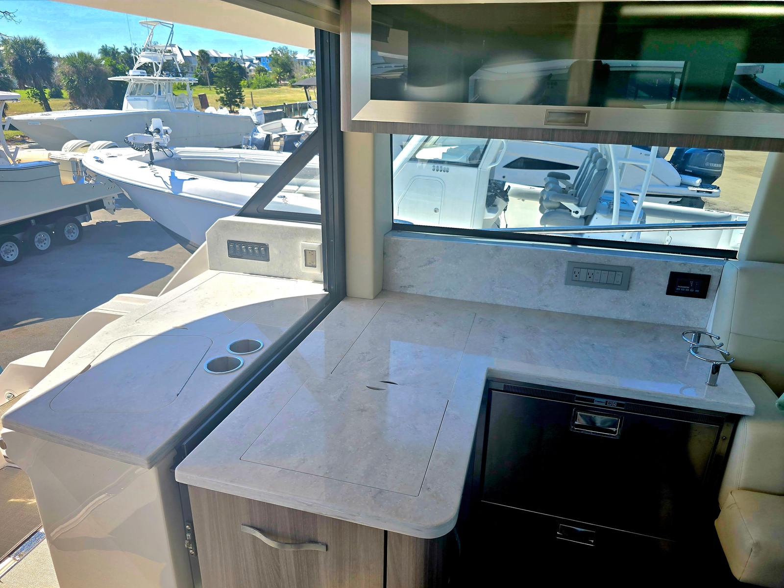 The Regal 38 XO is thoughtfully designed to maximize comfort, convenience, and enjoyment on the water. Its spacious deck layout offers plenty of seating for guests, making it ideal for socializing and entertaining. The yacht’s elegant interior features high-quality materials and finishes, creating a luxurious atmosphere that rivals much larger vessels. Every detail, from the ergonomic helm station to the generous lounge areas, is crafted to enhance your time on board.Special features of the 2021 Regal 38 XO include its triple-engine setup, which not only boosts performance but also provides added maneuverability for docking and close-quarters handling. The yacht’s advanced hull design ensures a smooth and stable ride, even in choppy conditions. With a length of 39.25 feet, the Regal 38 XO offers ample space for both indoor and outdoor activities, making it a versatile choice for a wide range of boating adventures.