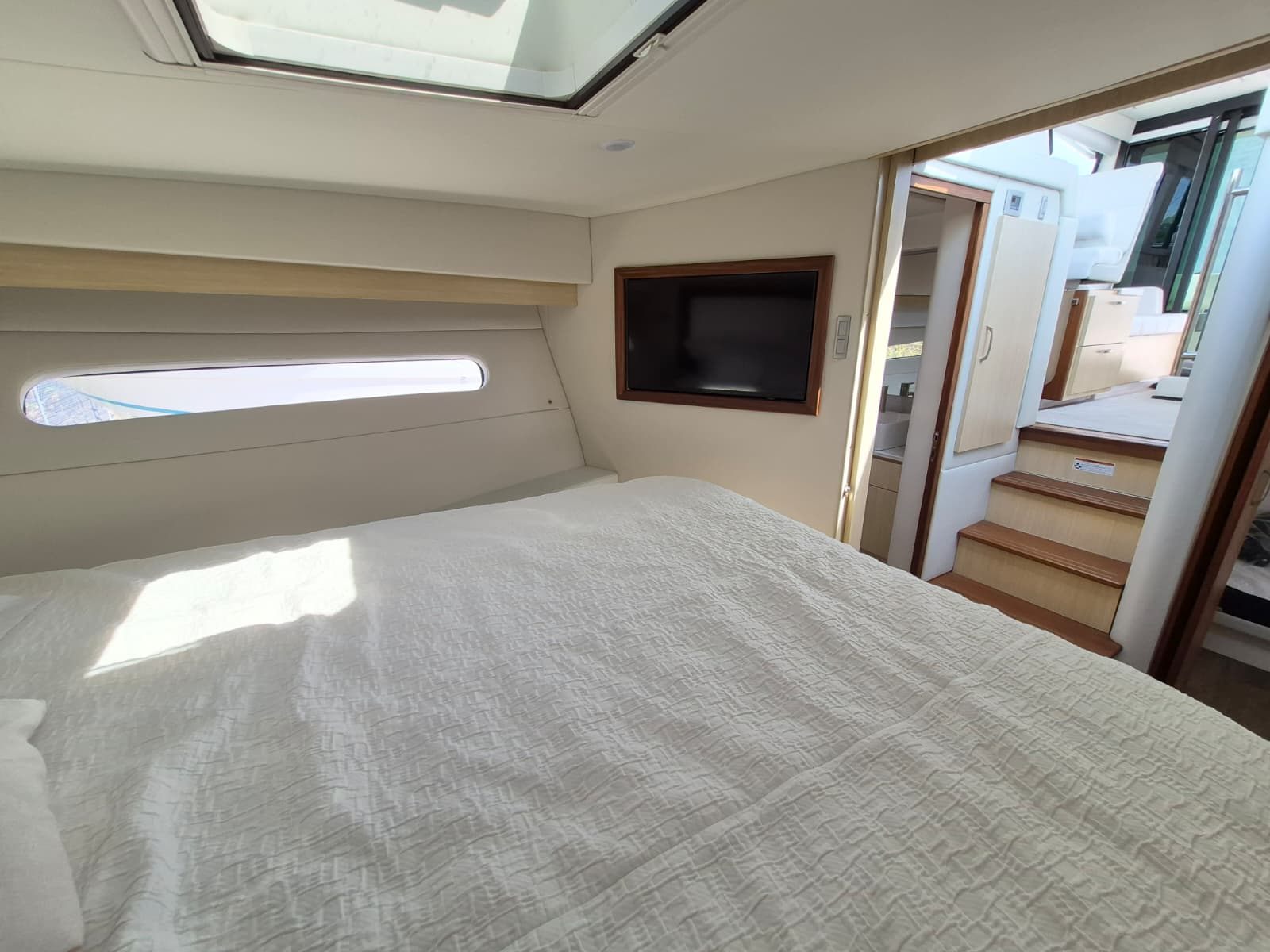 The Regal 38 XO is equipped with a host of special features designed to enhance your time on the water. The aft cockpit canvas with a transom seat cover provides protection and comfort, allowing you to enjoy the outdoor seating area in any weather. The Palm Beach enclosure offers additional versatility, creating a sheltered space for relaxing or entertaining guests. For added privacy and sun protection, the yacht includes a windshield privacy cover in elegant black canvas.Step into the cockpit and experience the comfort of the seagrass mat, which adds a touch of luxury underfoot while being easy to maintain. The Snowcap finish gives the yacht a fresh and sophisticated appearance, complementing its modern design. Inside, the king comforter in Belgian linen and the neutral pillow package create a serene and inviting sleeping environment, ensuring restful nights after a day of adventure.