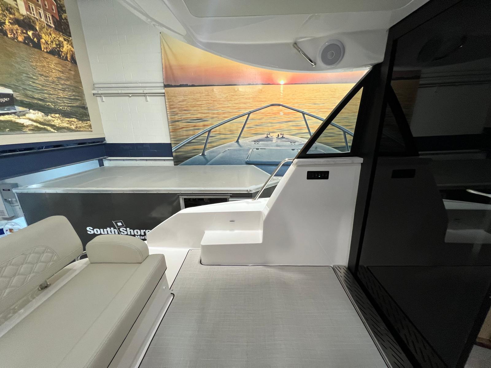 This Regal yacht is perfect for a variety of boating adventures. Imagine hosting elegant cocktail parties on the spacious deck, with the stunning black hull and Tahiti Beach White accents providing a beautiful backdrop. Family outings become unforgettable experiences, with plenty of room for everyone to relax and enjoy the ride. The yacht’s powerful engines and smooth handling make it ideal for exploring new destinations, whether you’re cruising along the coast or venturing into open waters. The comfortable seating and luxurious finishes create a welcoming environment for fishing trips, romantic getaways, or simply unwinding with friends.