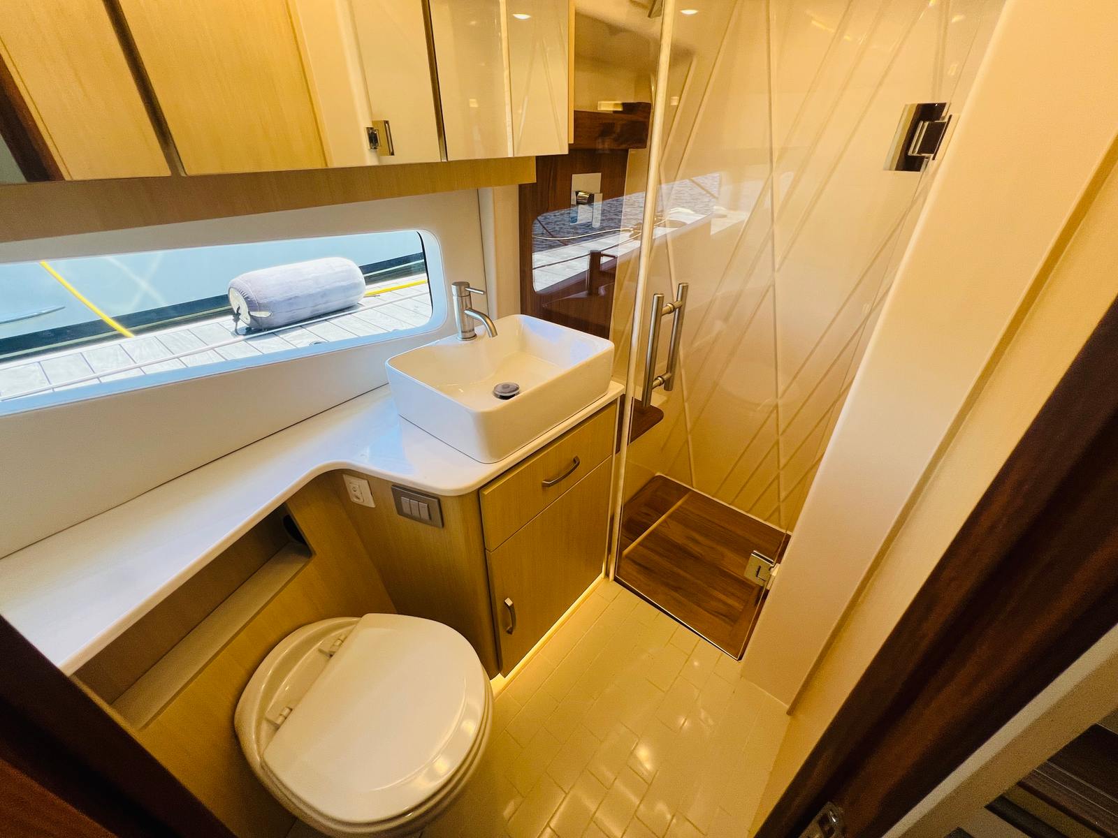 Step aboard the Regal 42 XO and discover a world of luxury and convenience. The forward stateroom features a toasted oak finish, creating a warm and inviting atmosphere for restful nights on the water. The yacht is equipped with an overboard discharge toilet and a second head, ensuring comfort and privacy for you and your guests. Advanced navigation is made easy with the Garmin HD Closed Array Radar and GPS 9222, complemented by the B60 transducer for precise location tracking and safety. The aft cockpit canvas with a transom seat cover provides protection and style, while the generator (diesel 110V) ensures reliable power for all your onboard needs. The aft vent in Tahiti Beach White adds a touch of elegance to the exterior, and the pillow package in neutral tones enhances comfort throughout the yacht.