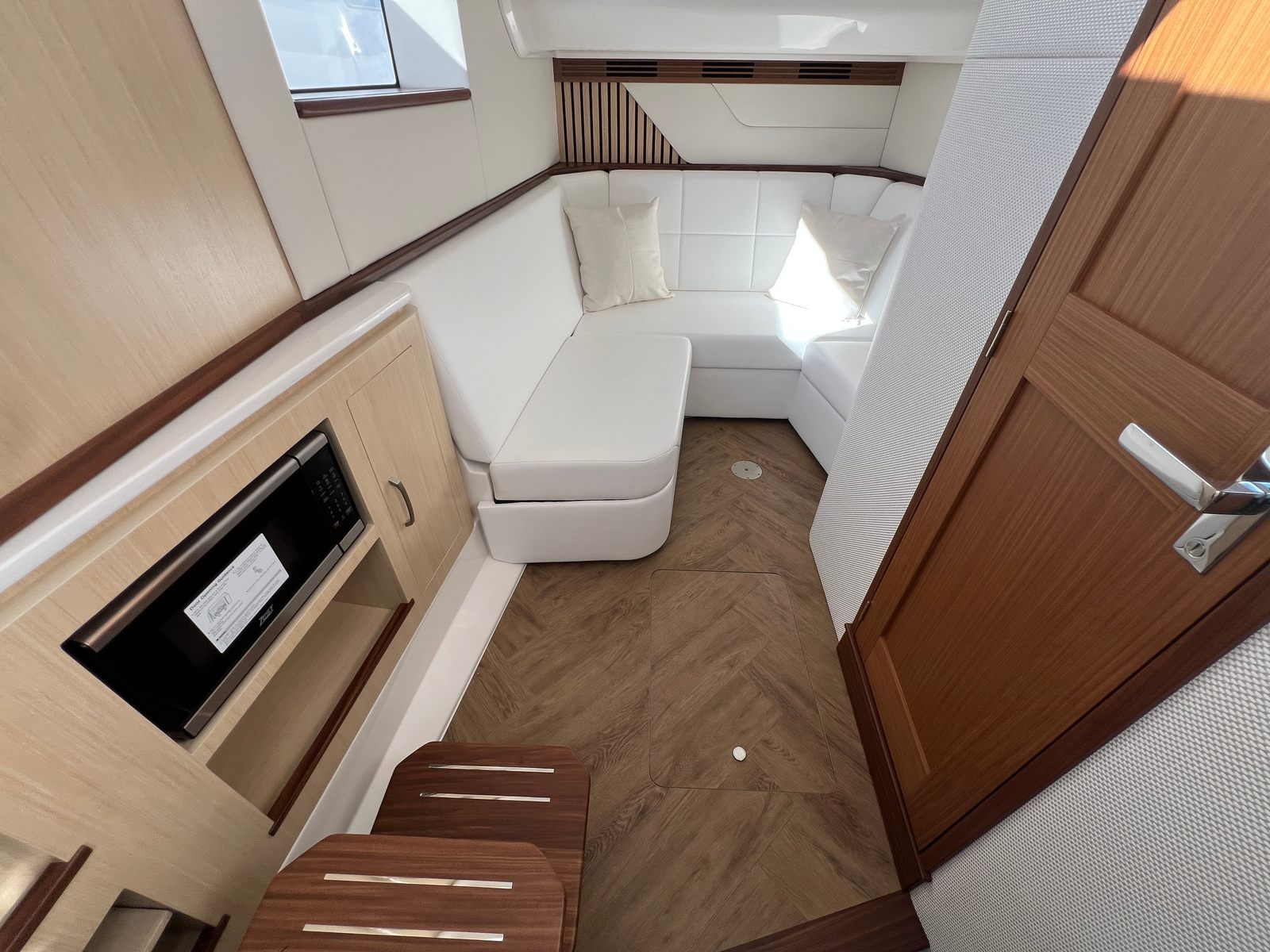 Under the hood, the Regal 43 SAV is powered by twin engines, delivering a combined 1200 horsepower. This powerhouse configuration ensures exhilarating speed, smooth handling, and reliable performance, whether you are cruising along the coastline or heading out for a weekend getaway. The advanced bow thruster provides exceptional maneuverability, making docking and navigating tight spaces effortless. With this level of power and control, the Regal 43 SAV offers a thrilling yet comfortable ride, perfect for both seasoned captains and those new to yachting.