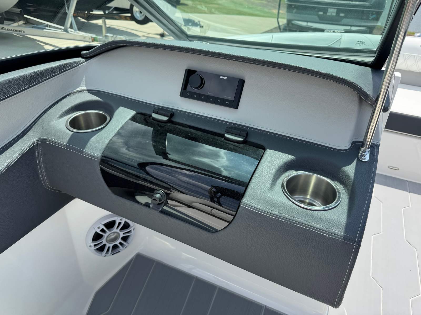 At the heart of the 2025 Regal LS2 Surf is a powerful Volvo V6 250 FWD EVC2 DP CAT engine, delivering an exhilarating 250 horsepower. This advanced engine setup ensures smooth acceleration, responsive handling, and the capability to tackle a variety of water conditions with confidence. Whether you are carving through waves or cruising along the shoreline, the LS2 Surf’s performance is both thrilling and reliable. The forward drive system enhances maneuverability, making it easy to navigate tight marinas or shallow waters, while the transom trim switch allows for quick adjustments to optimize your ride.